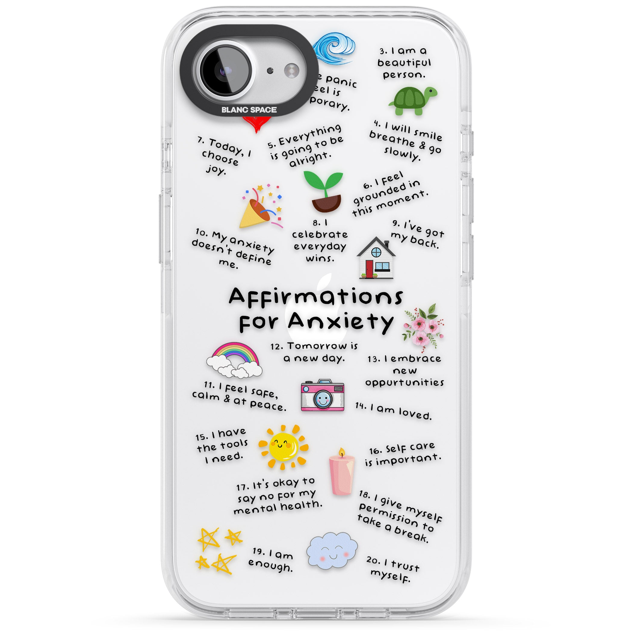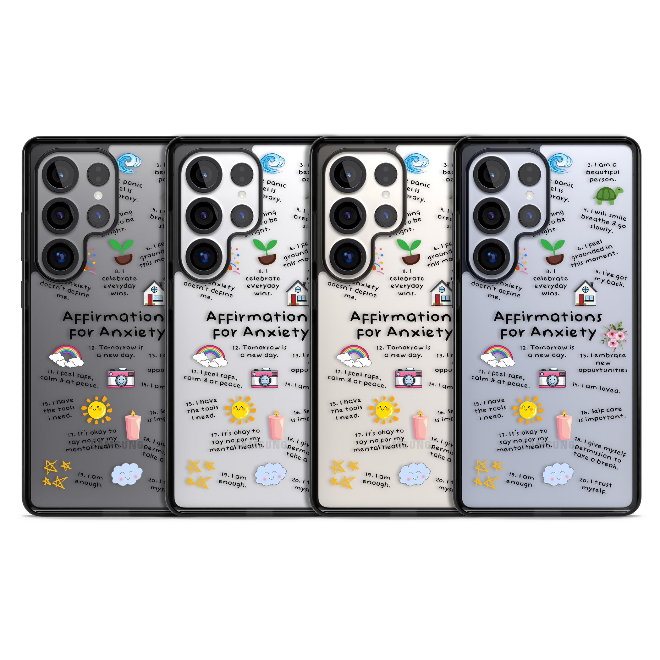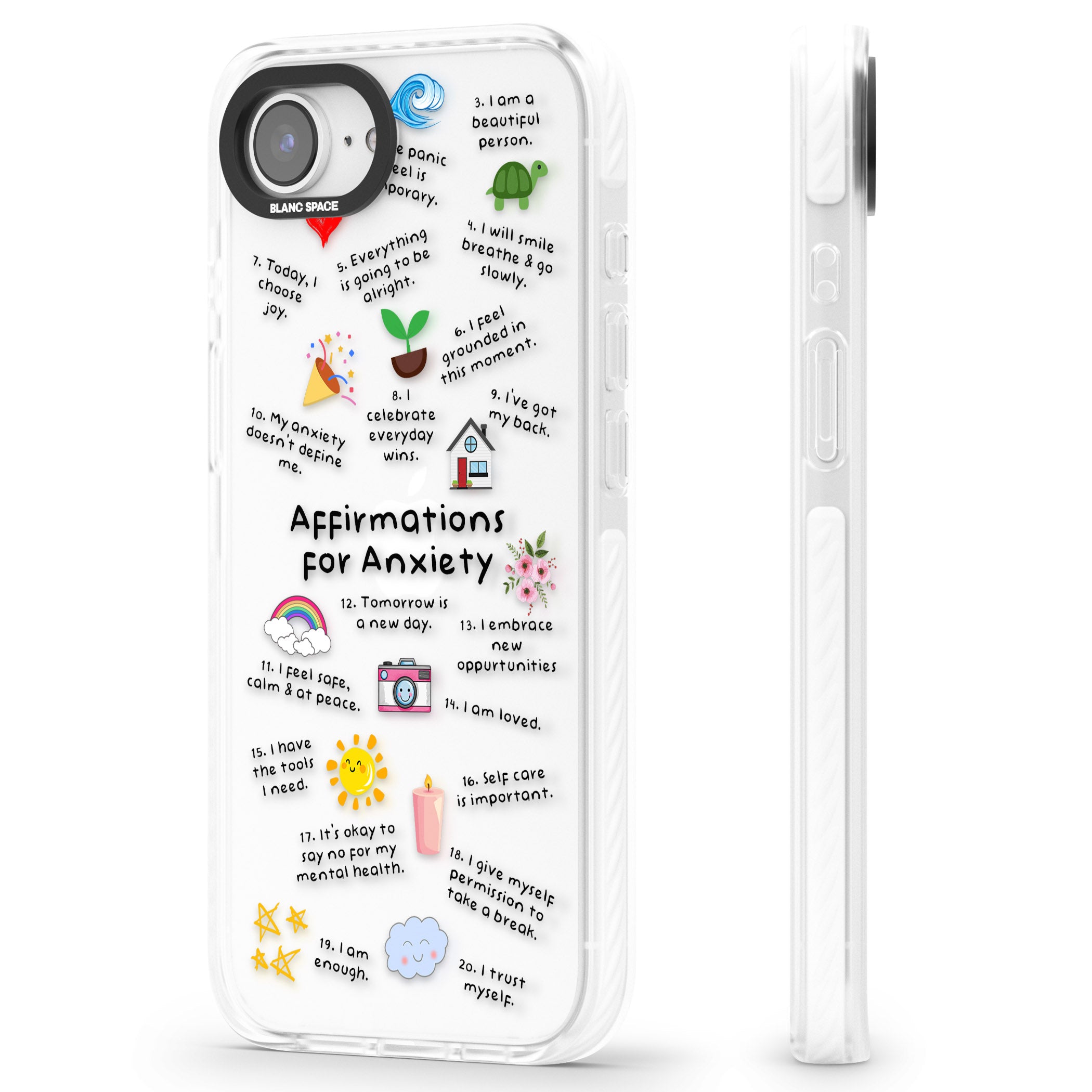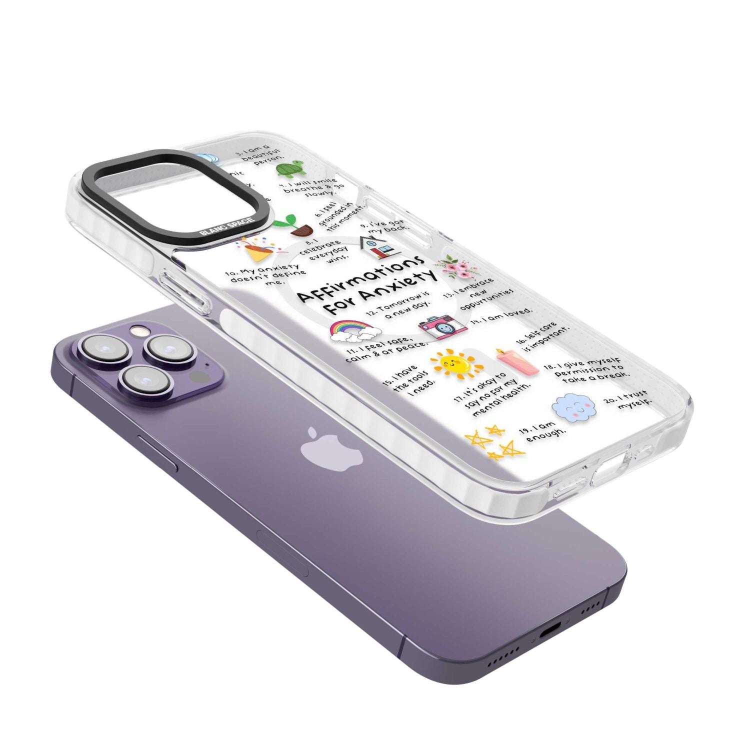 Transform your phone into a canvas of positivity and style with our Affirmations for Anxiety Phone Case. Featuring uplifting messages and playful icons, it's your daily reminder to embrace each day with confidence.