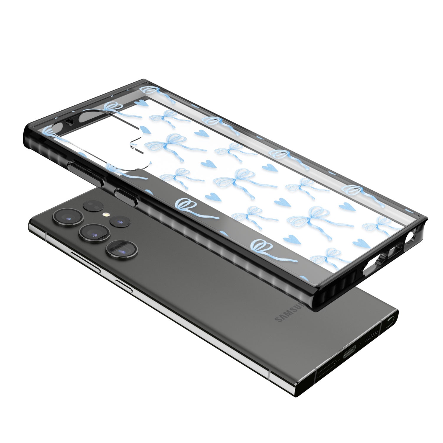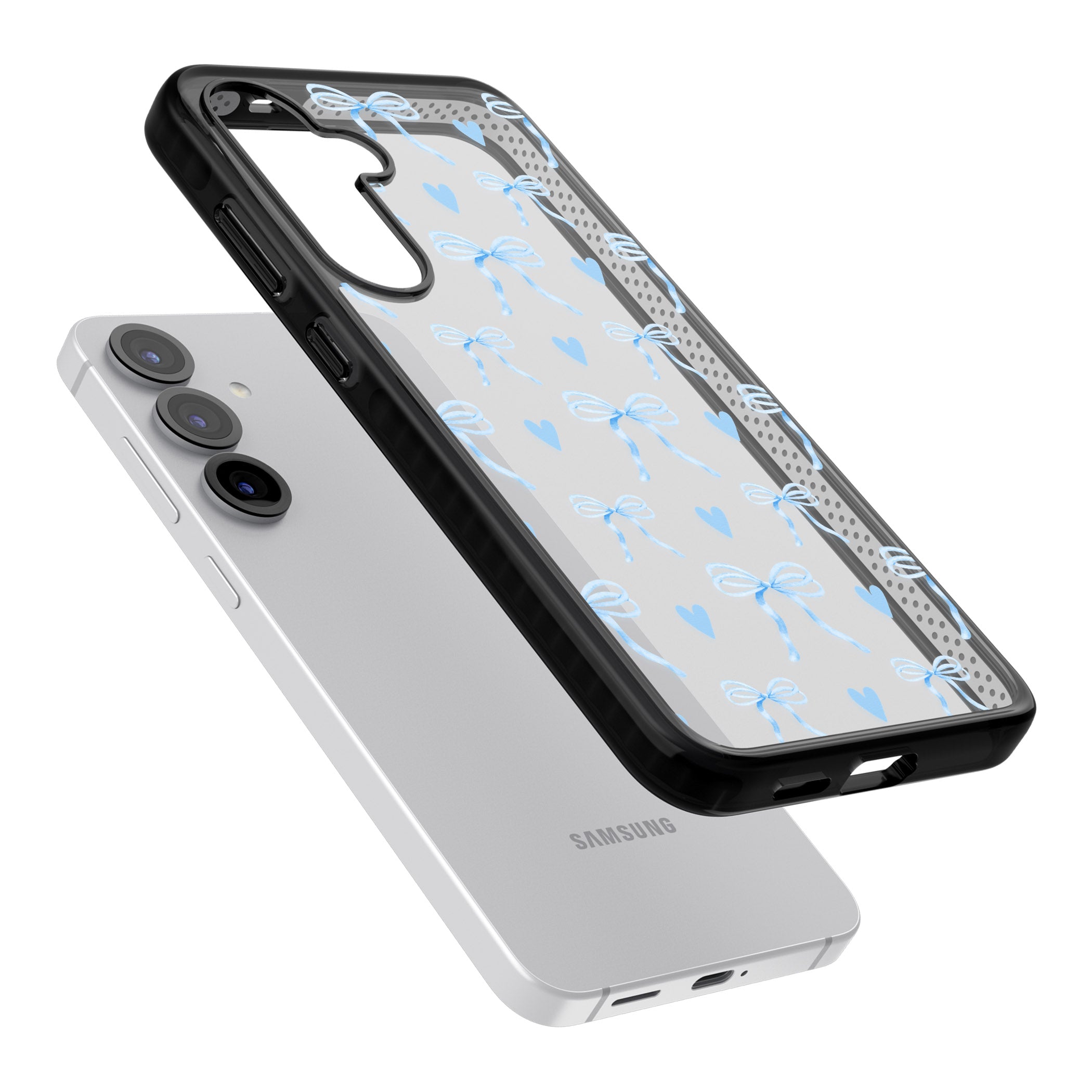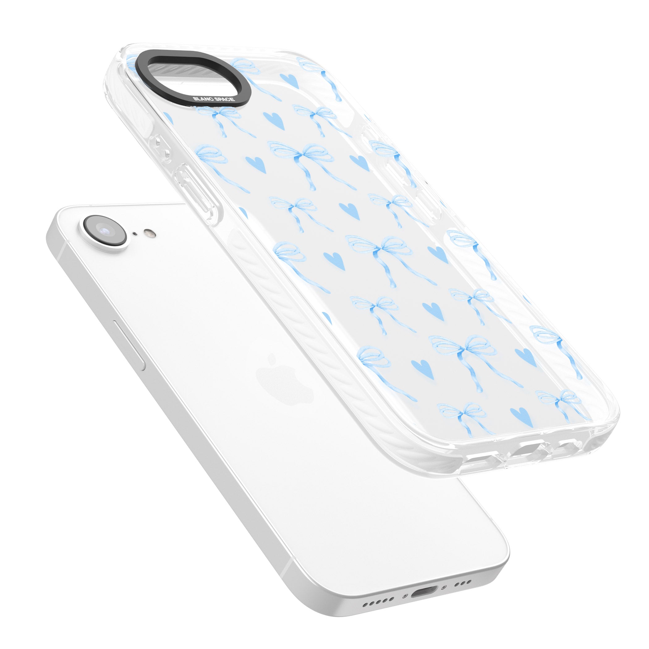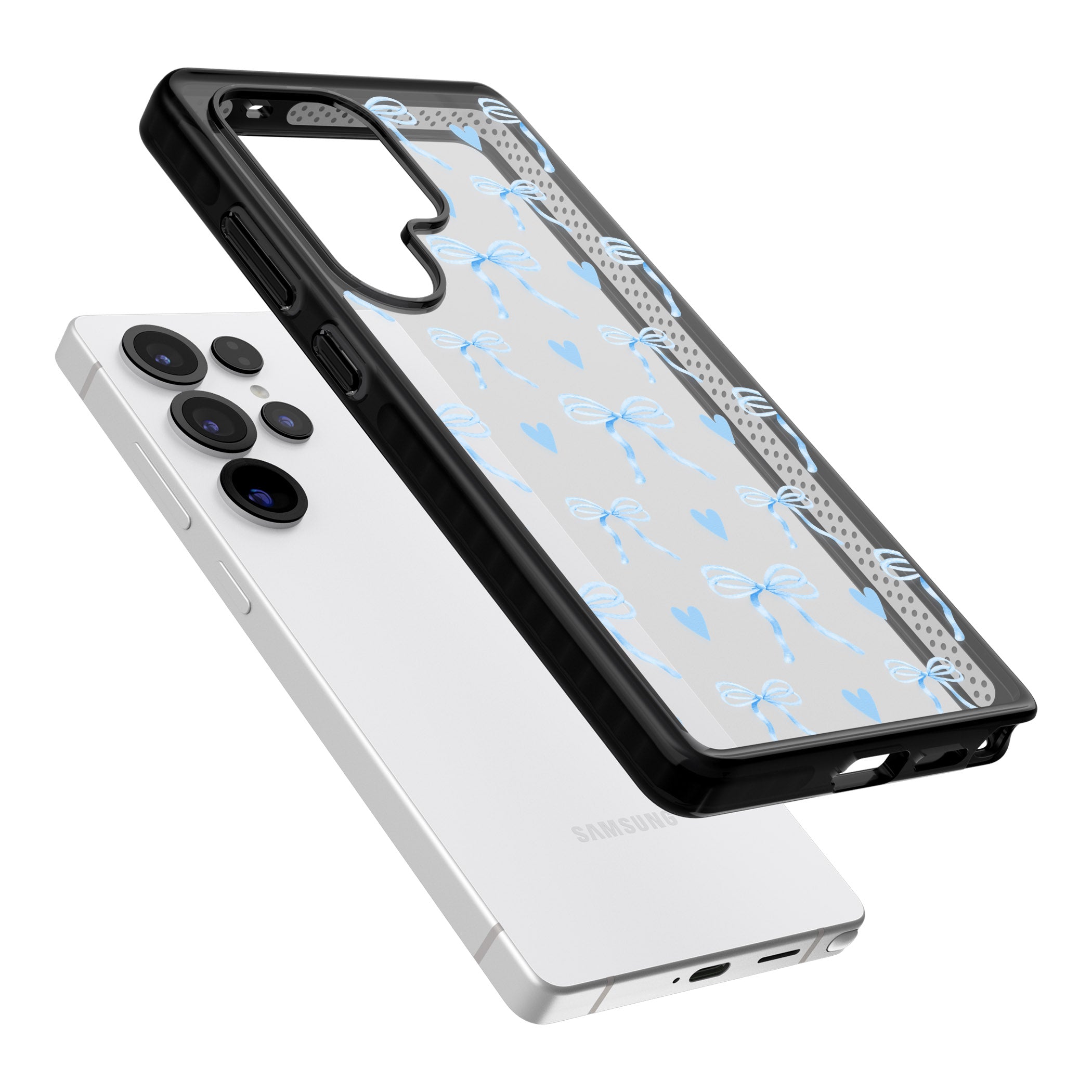 Enhance your style with this flirty mix of blue bows and hearts. It’s where charm meets chic, letting your phone reflect your personality.