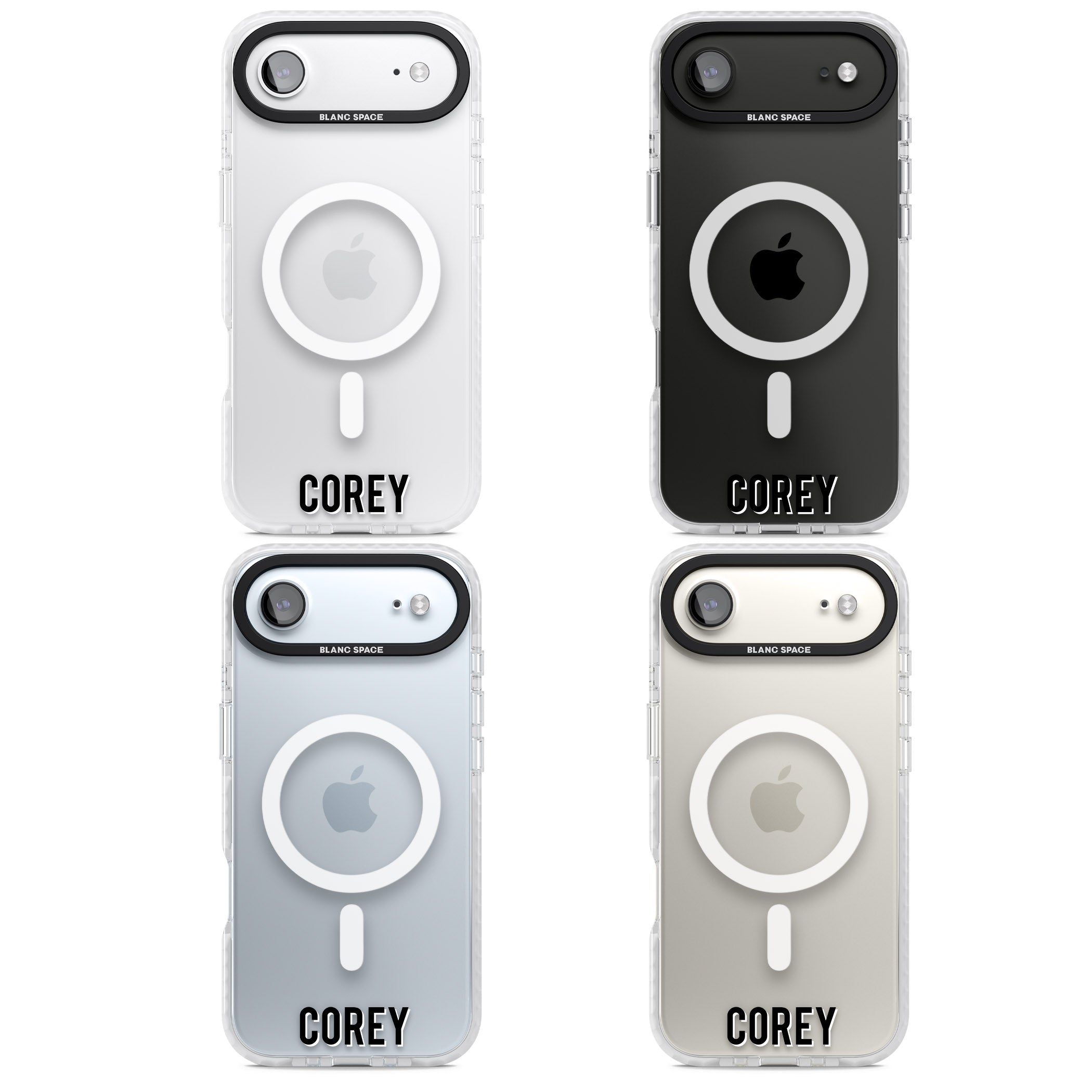 Express your style with the Corey Text Phone Case. Made for the bold and playful, this personalized case ensures your phone stands out with your chosen text, encapsulating both protection and personality.