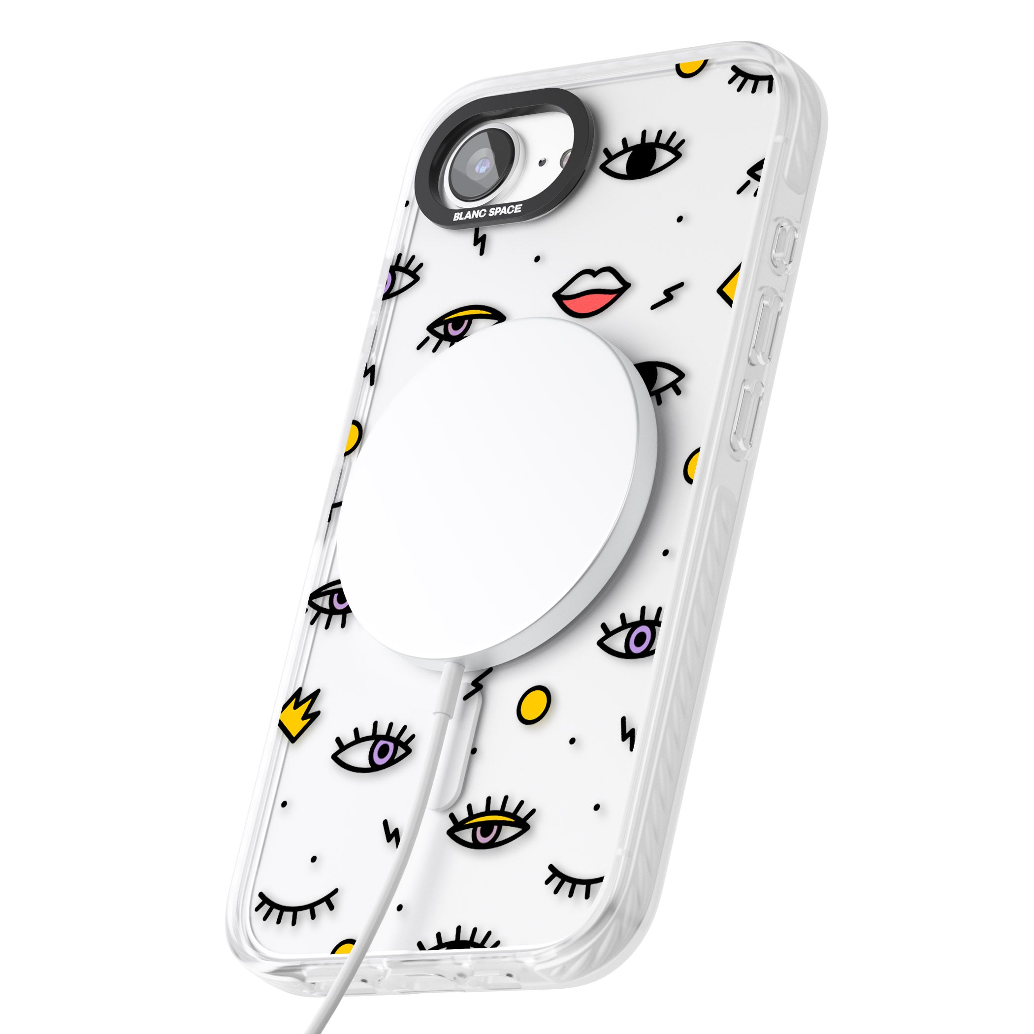 Elevate your style with a phone case that's both playful and protective. This design features whimsical eyes and lips icons, adding personality to your device while keeping it safe. "Protection with Personality."