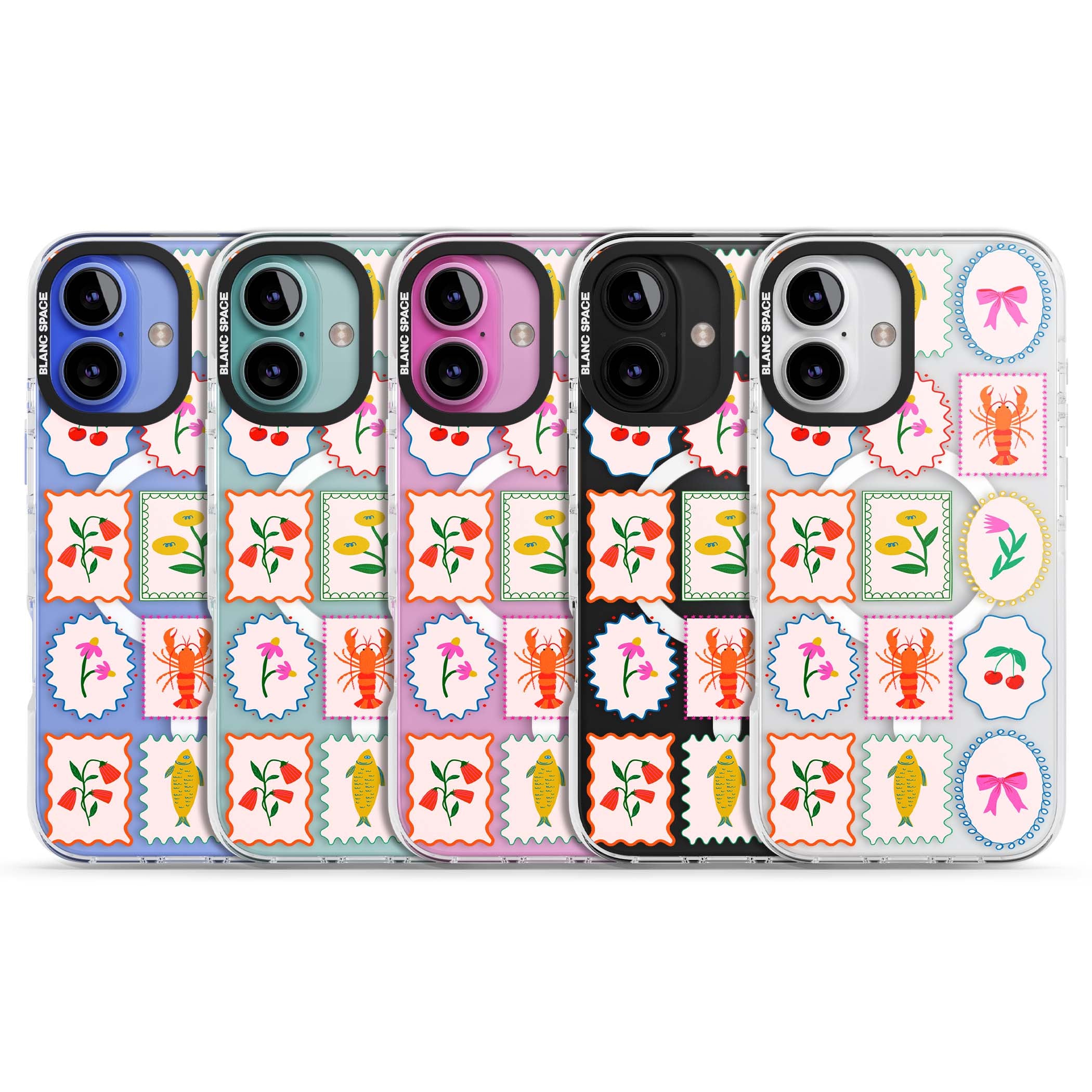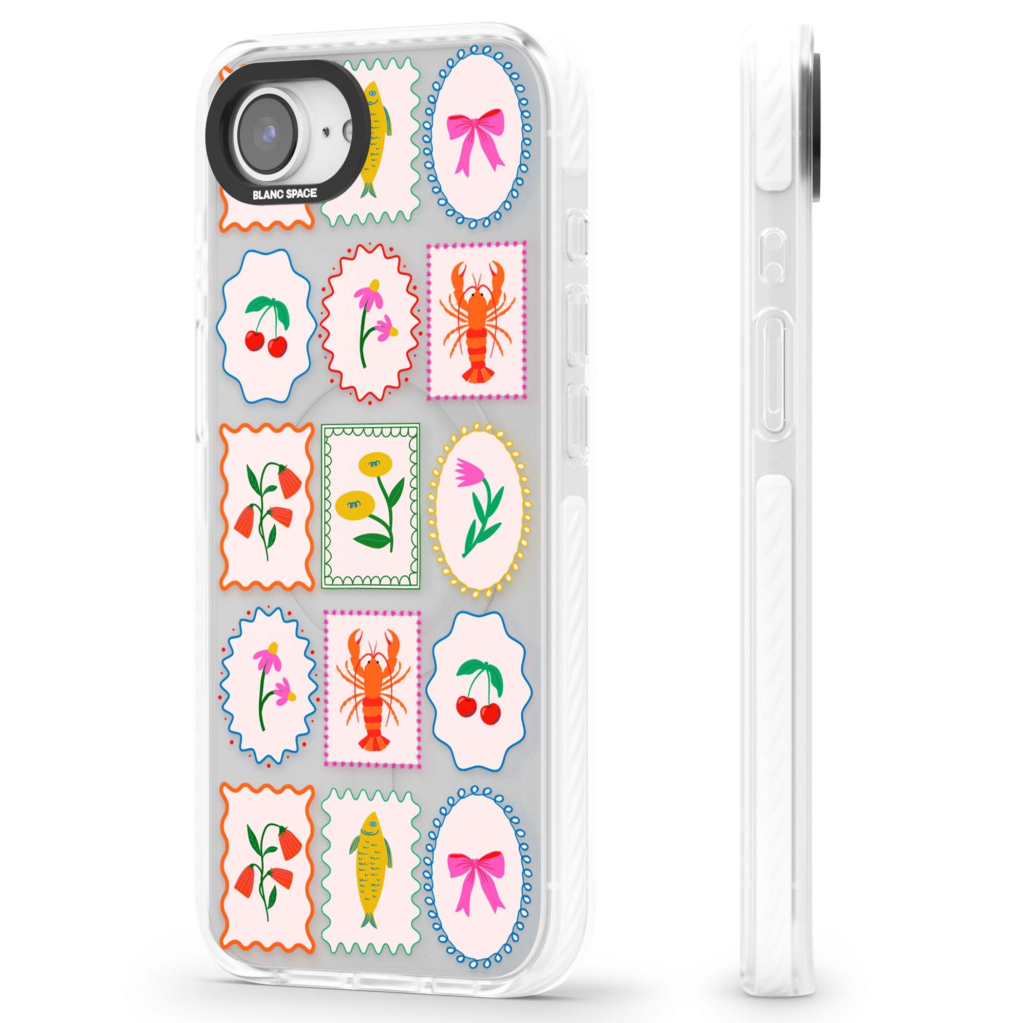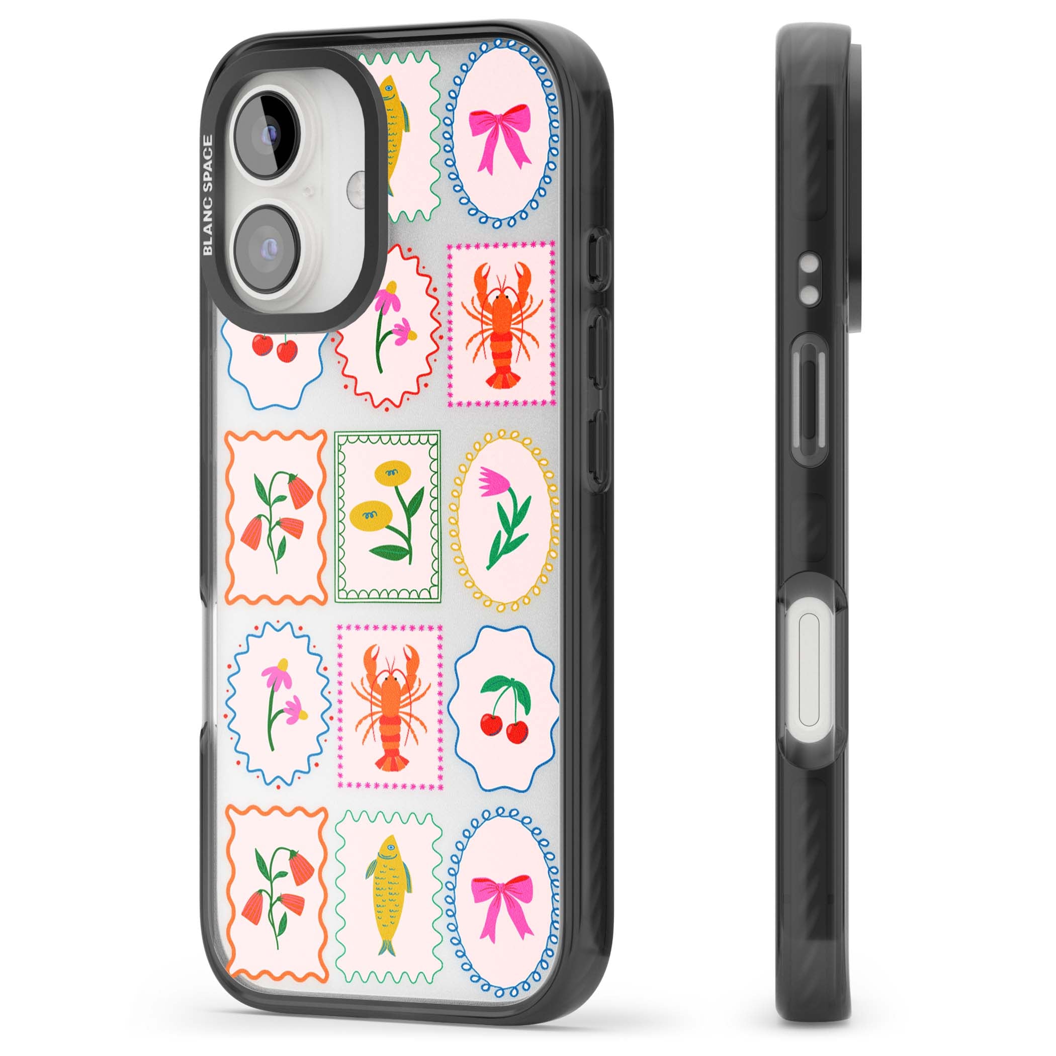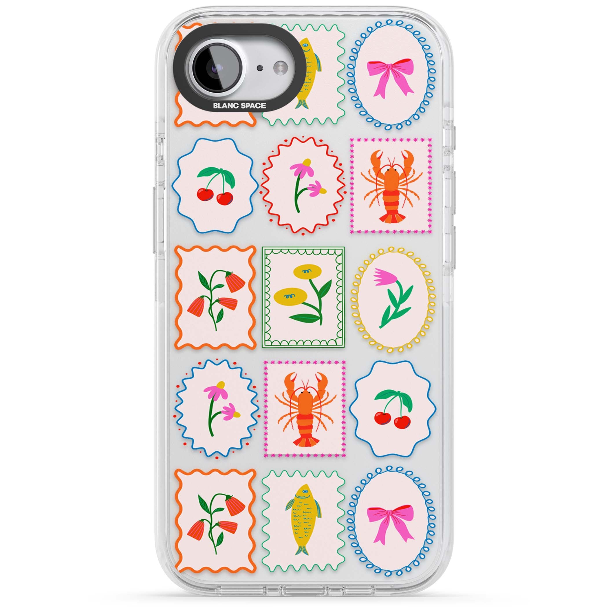 Dive into a playful sea of style with our Seafood Stamp Phone Case. It's a whimsical take on protection, where lobsters and blooms come together in a parade of colors.