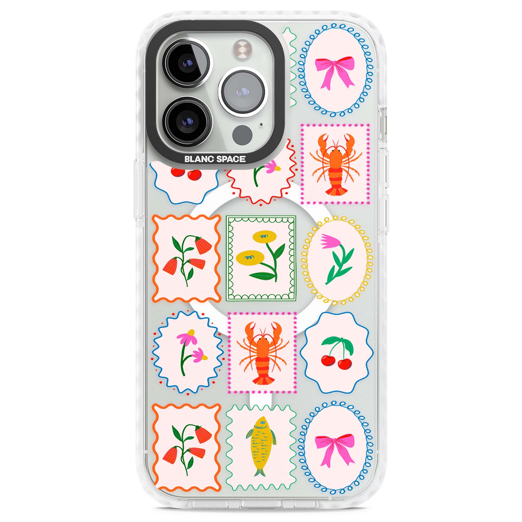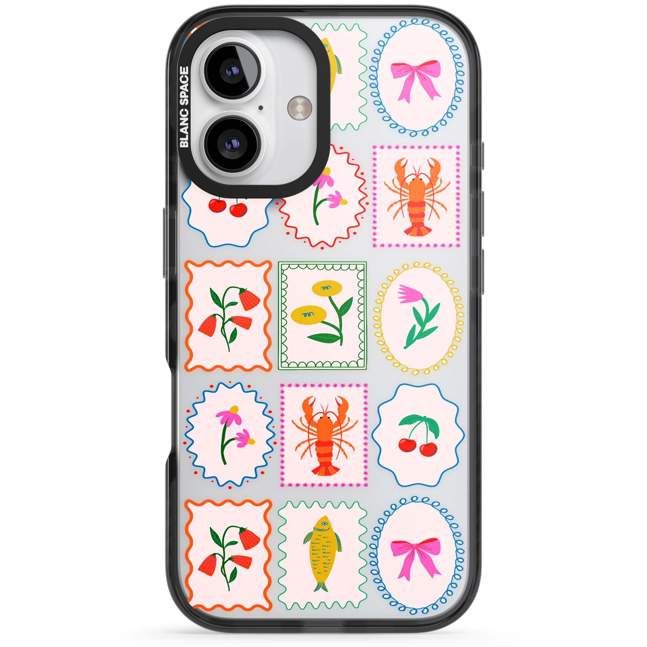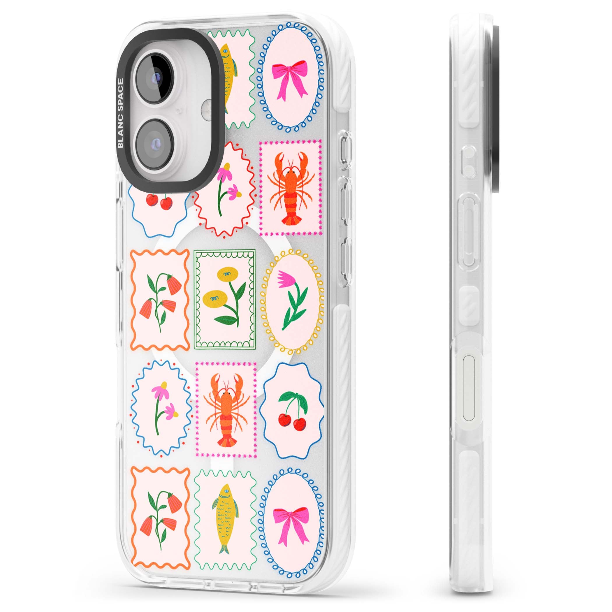 Dive into a playful sea of style with our Seafood Stamp Phone Case. It's a whimsical take on protection, where lobsters and blooms come together in a parade of colors.