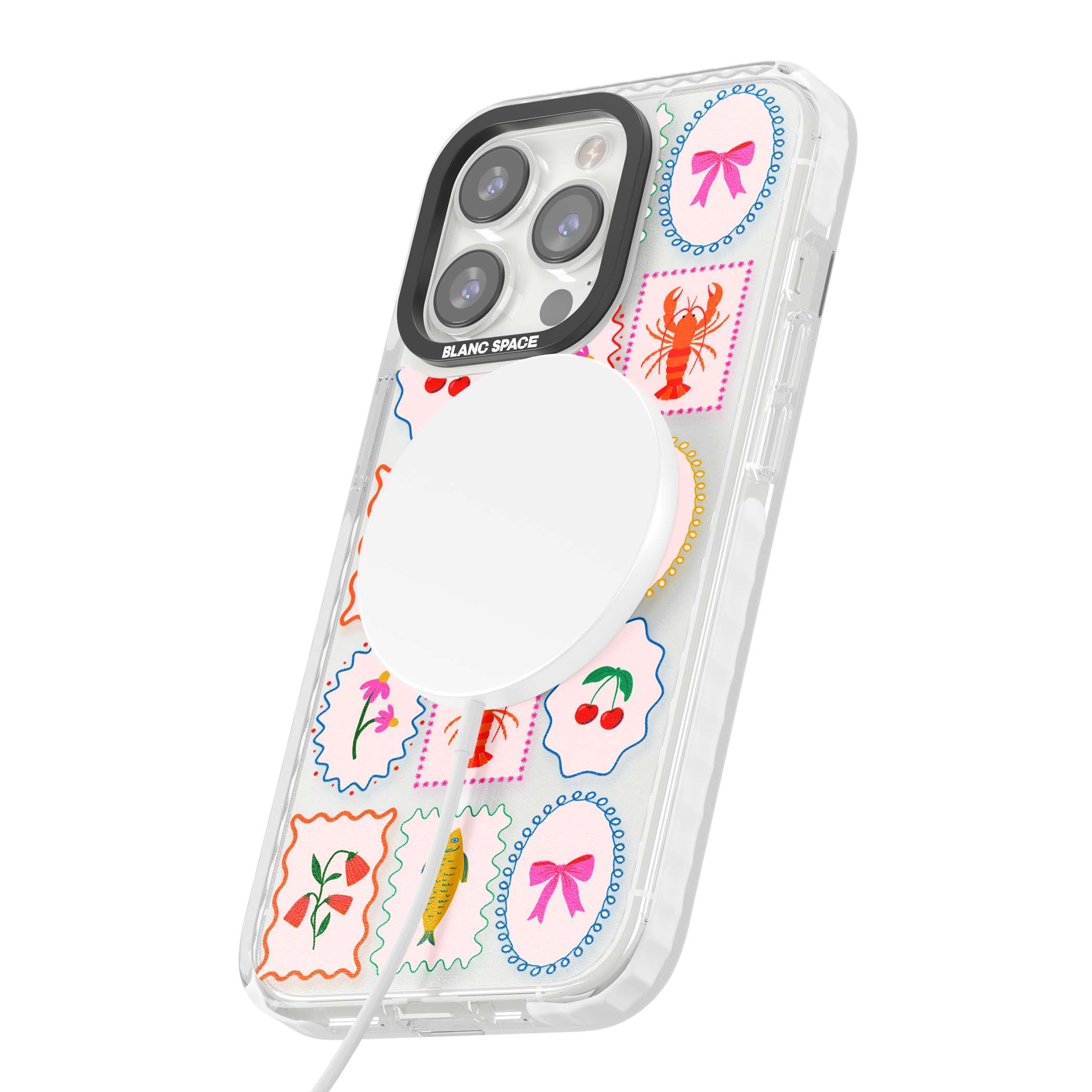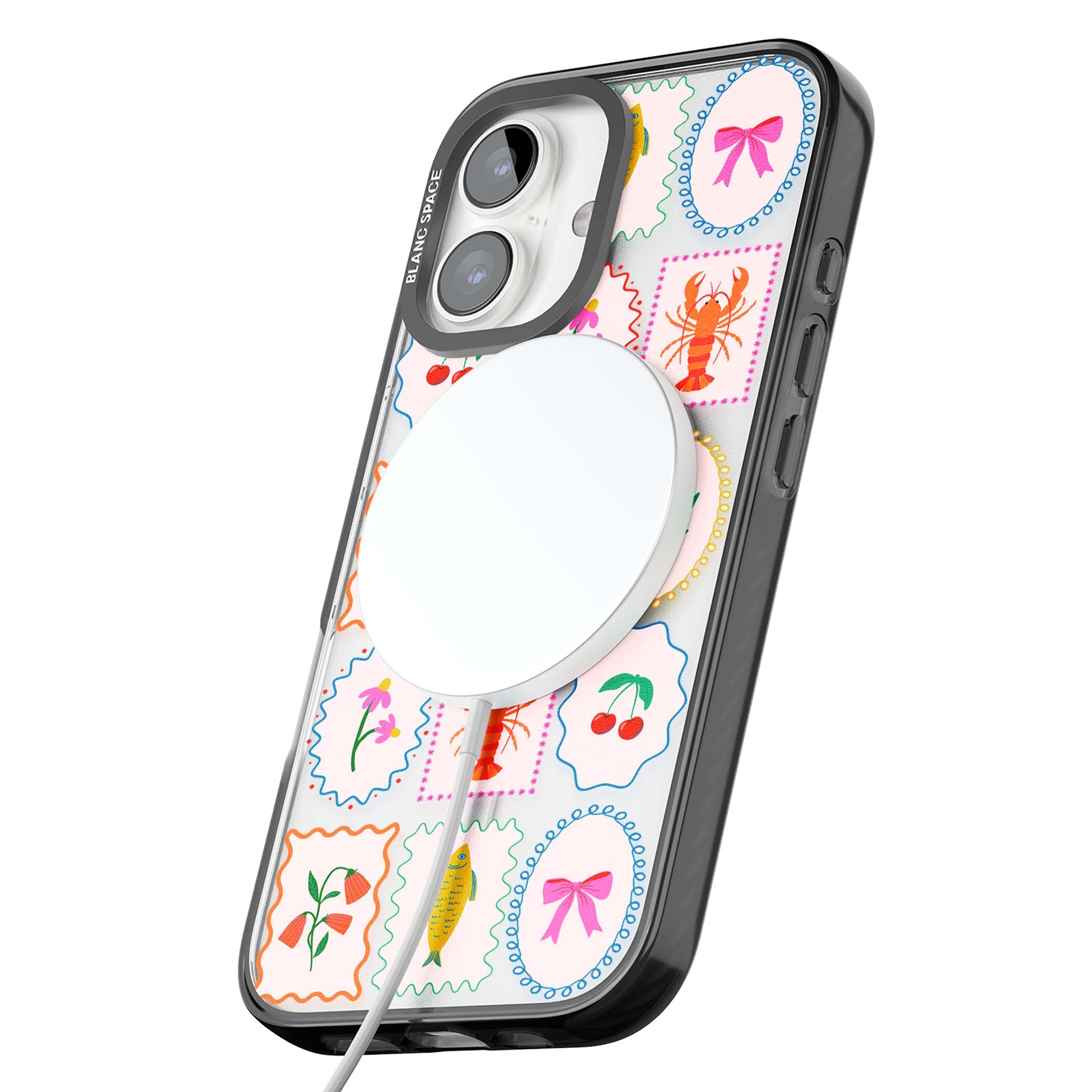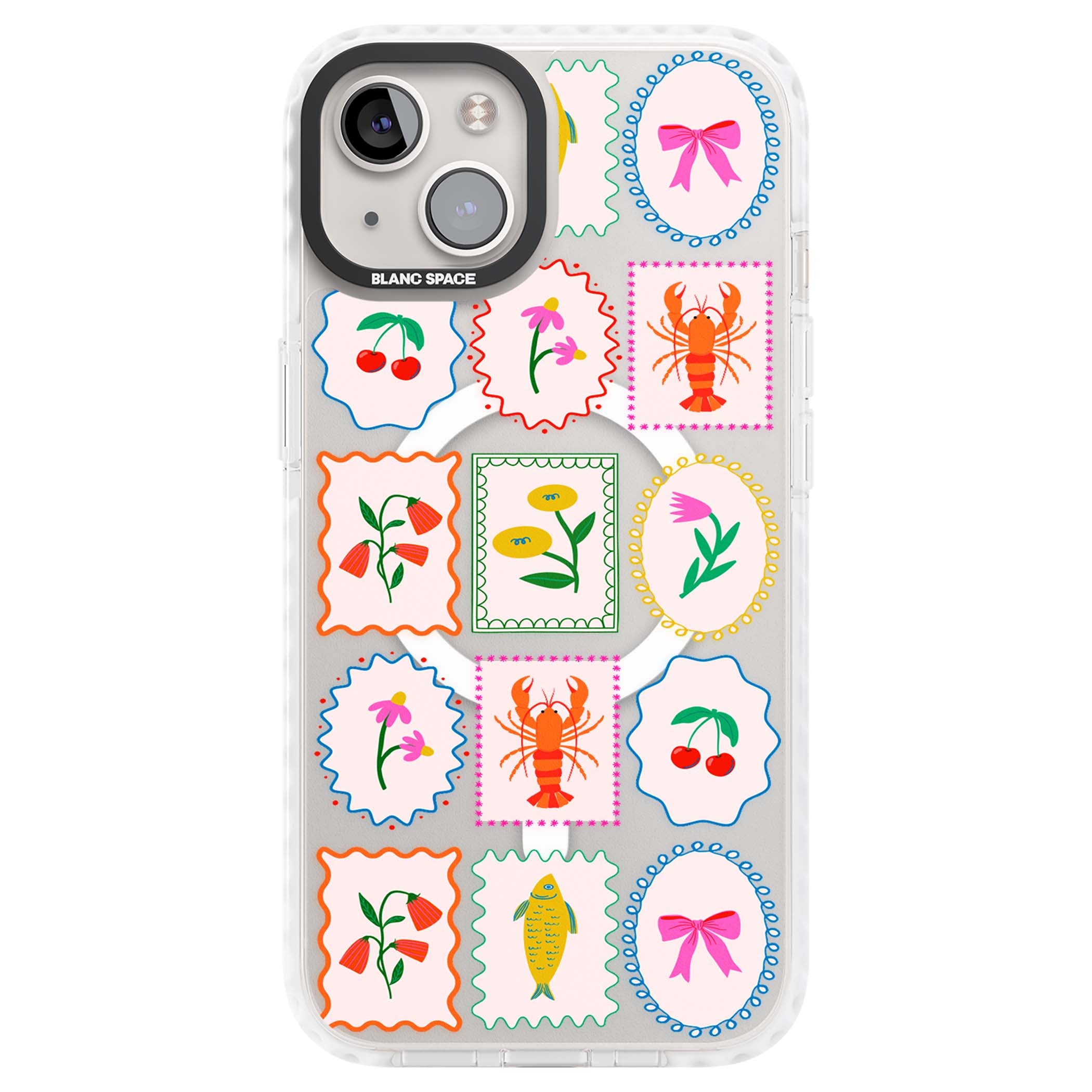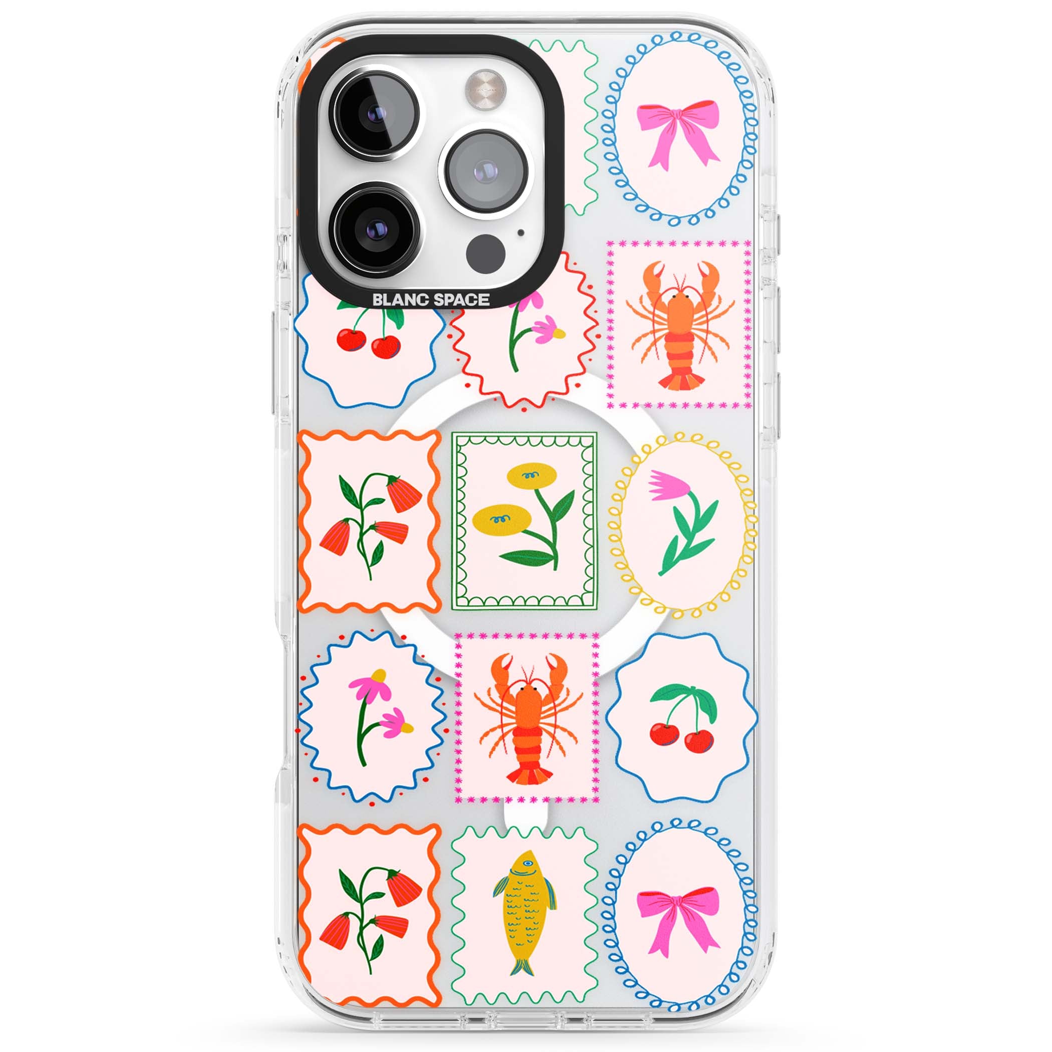 Dive into a playful sea of style with our Seafood Stamp Phone Case. It's a whimsical take on protection, where lobsters and blooms come together in a parade of colors.