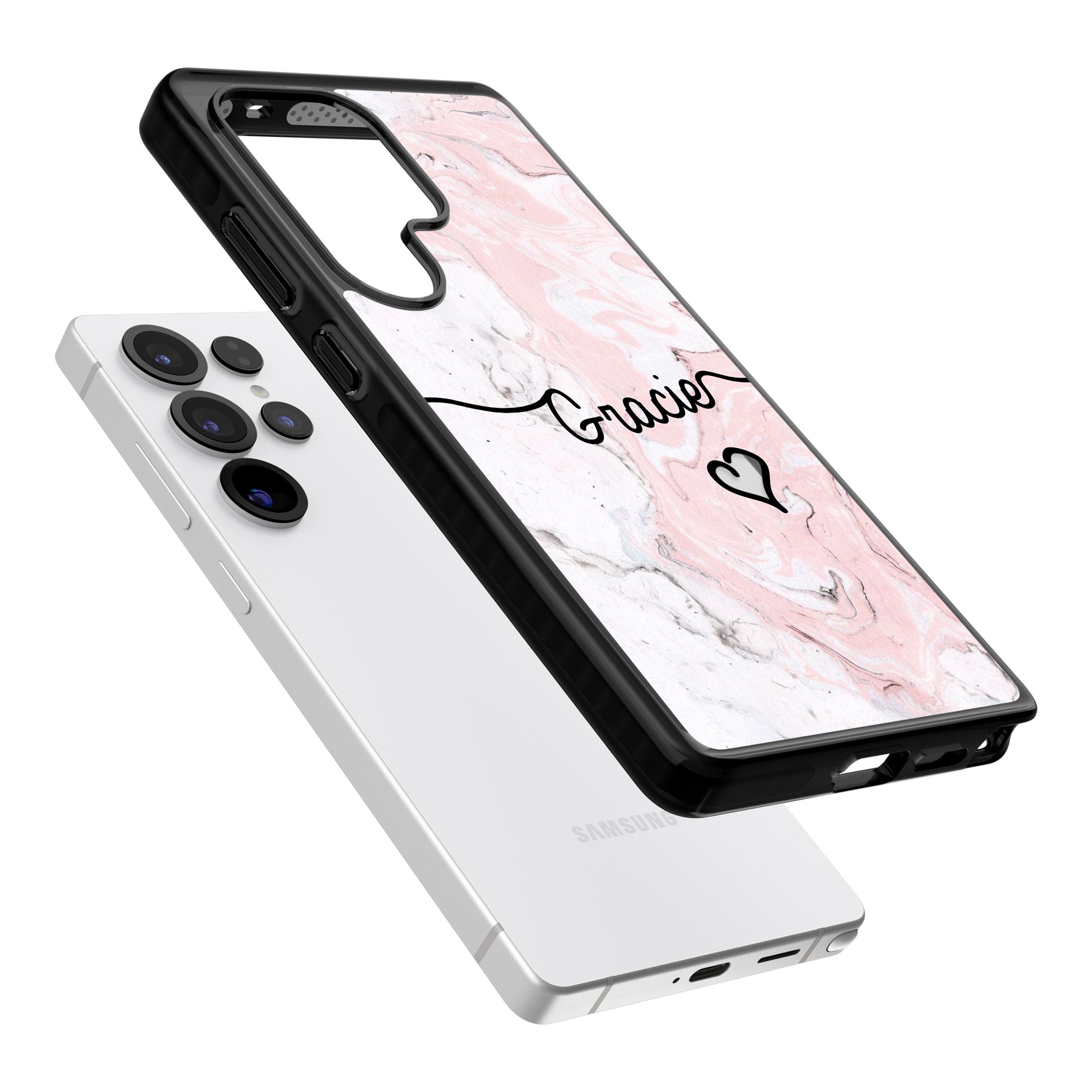 Dress your device in elegance with our Pink Marble Personalized Phone Case. A swirl of soft, pastel pinks and whites creates an enchanting backdrop for your name, turning protection into personal expression.