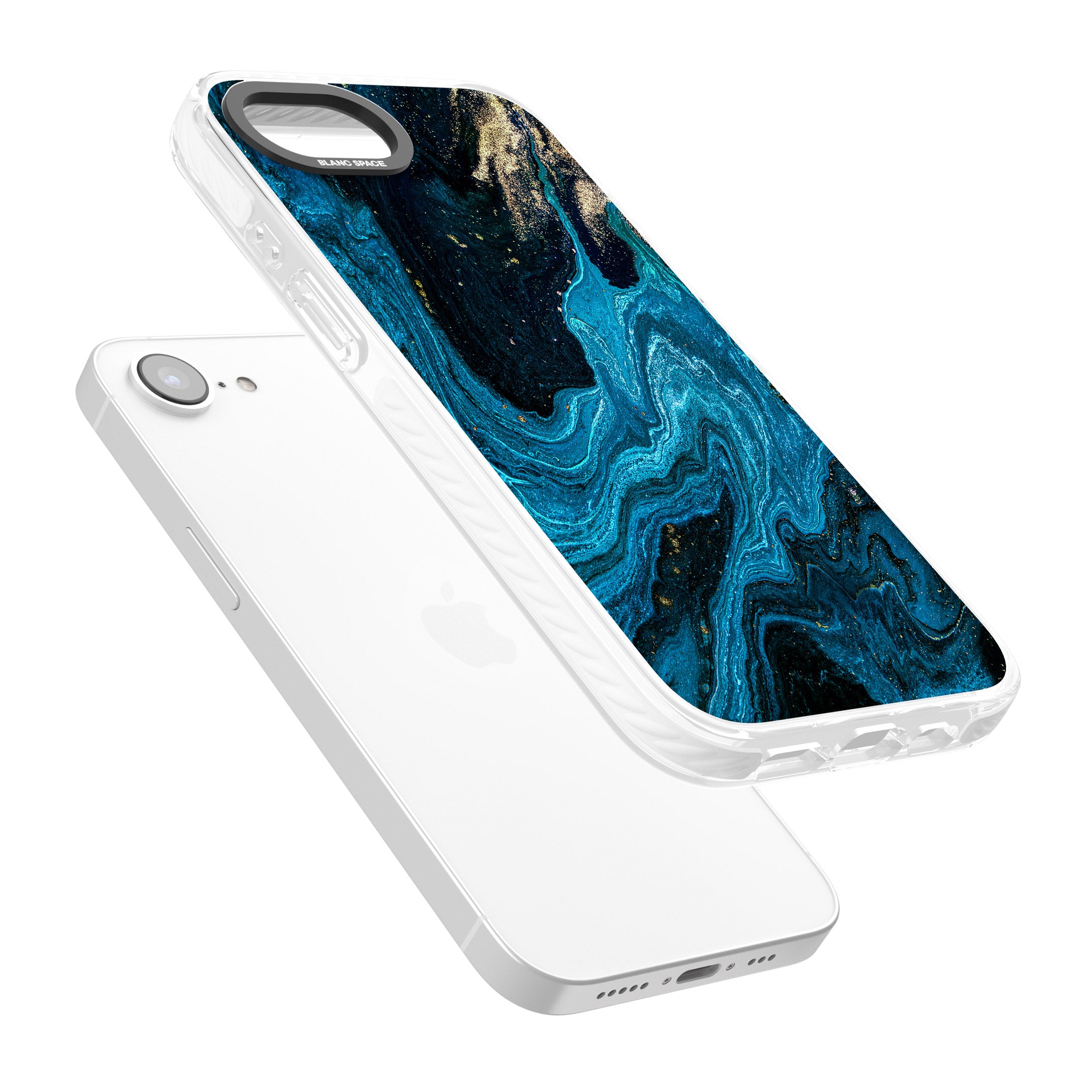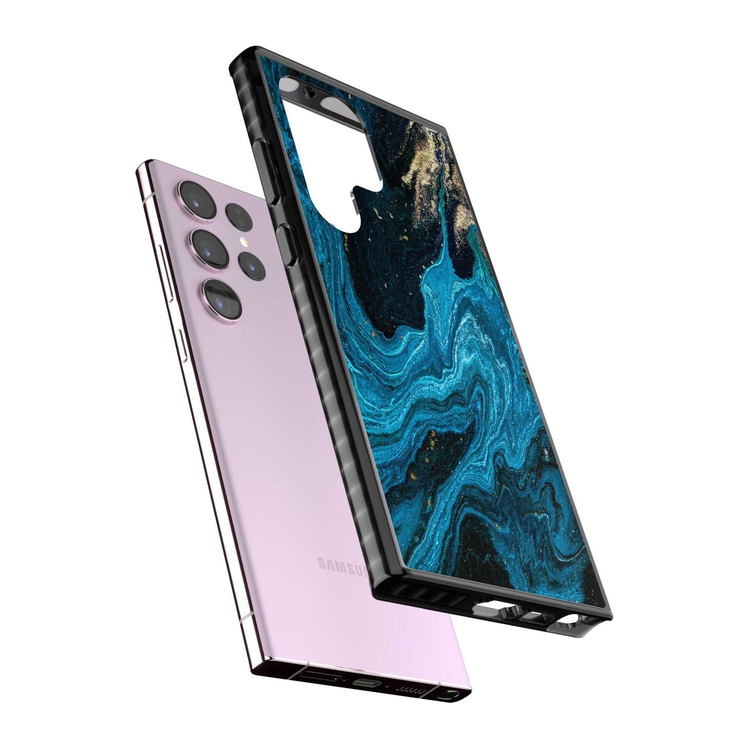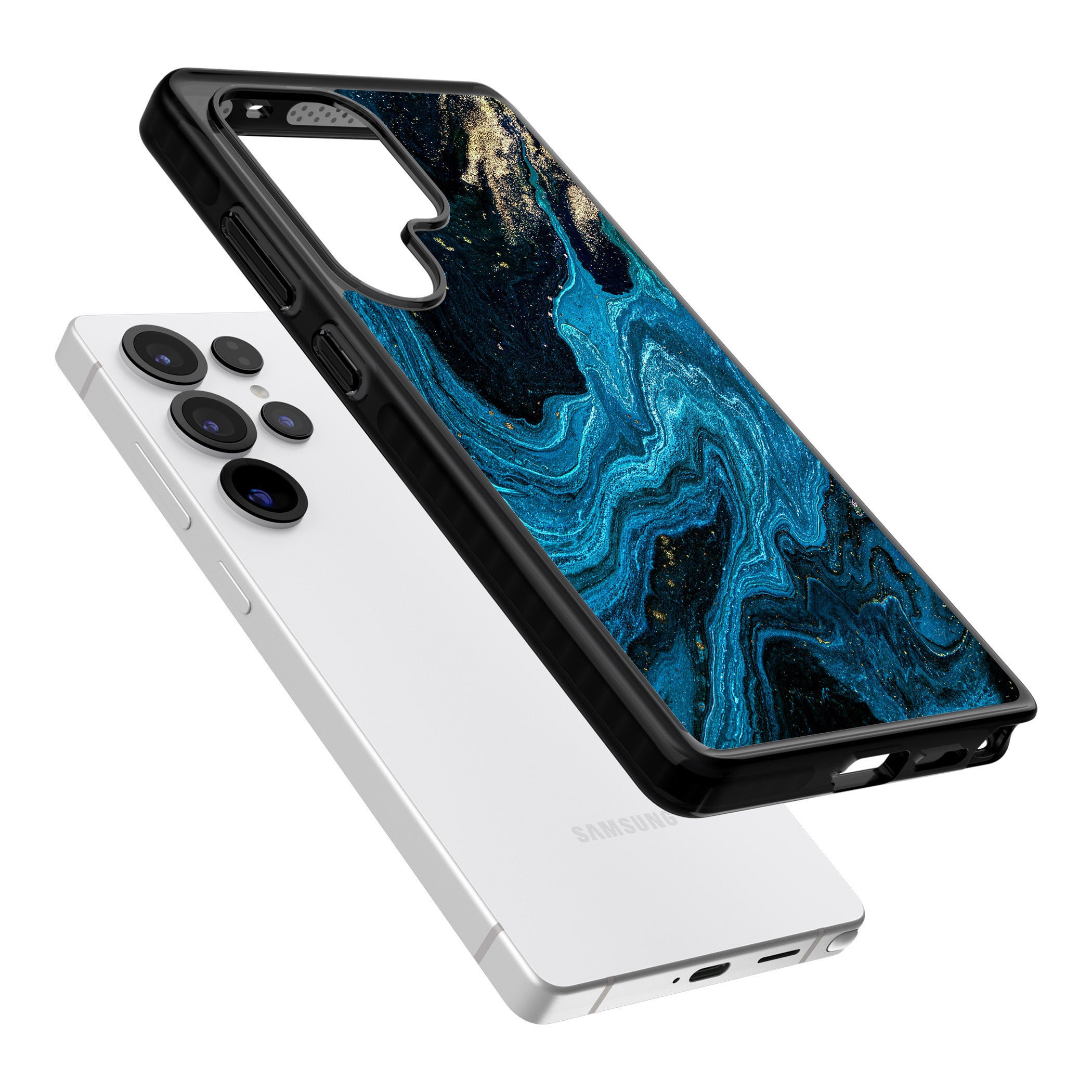 Dive into the swirl of sapphire blues and shimmering gold – your phone deserves this ethereal touch of elegance. Experience both style and protection with this captivating design.