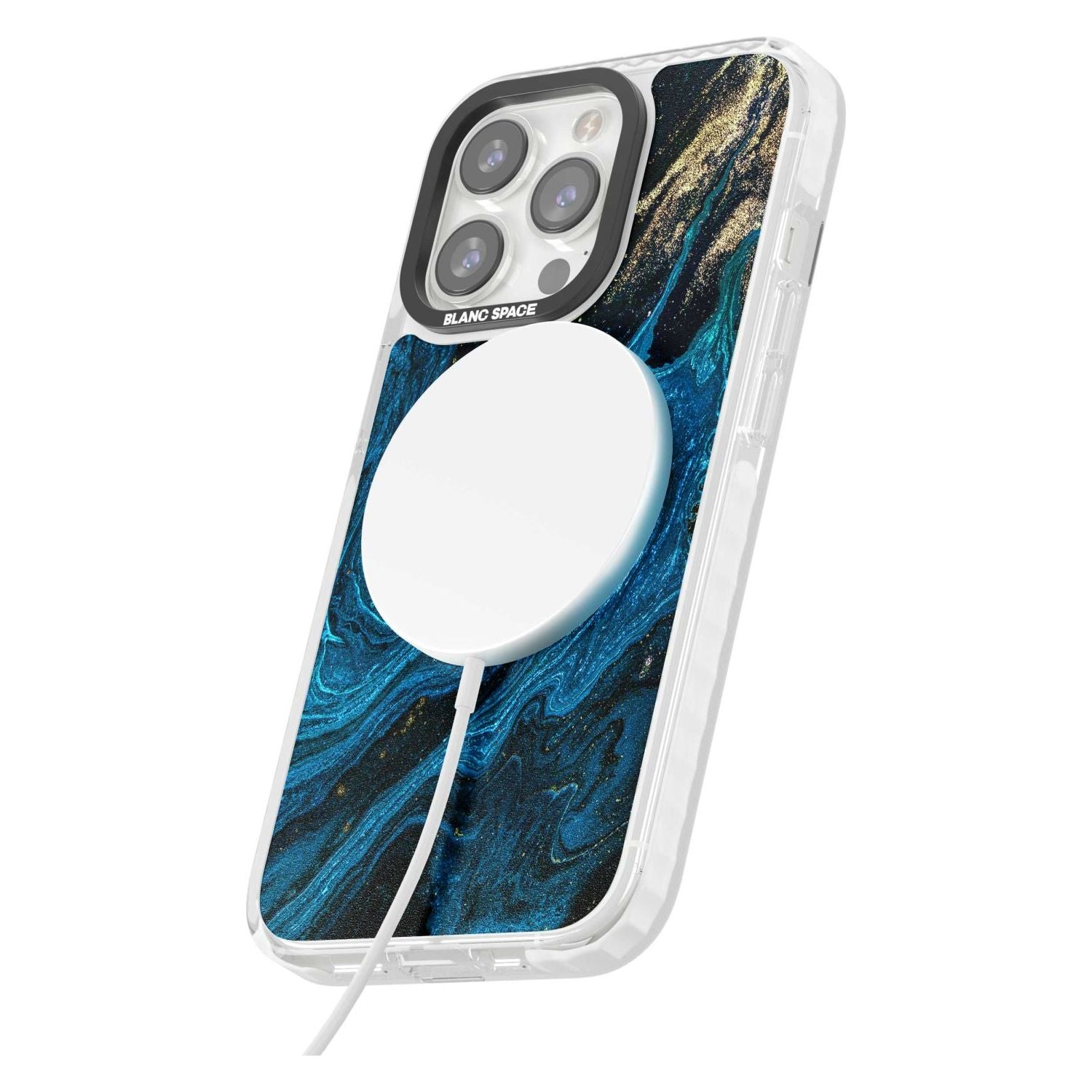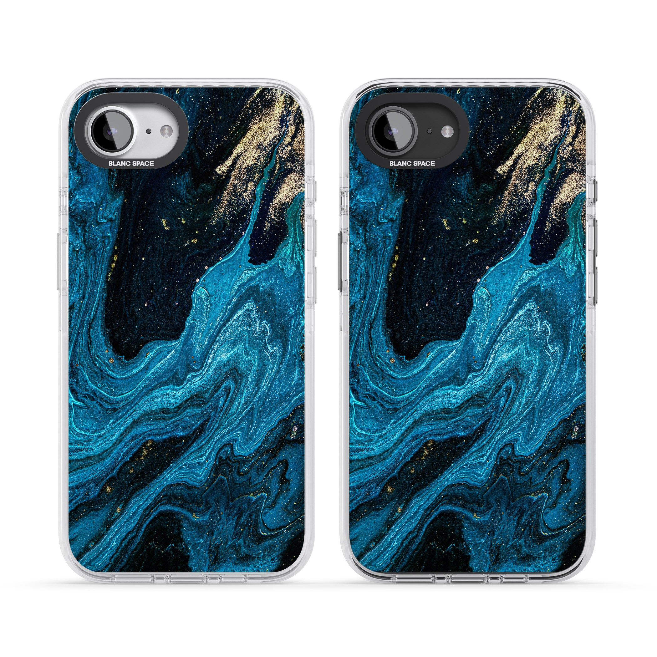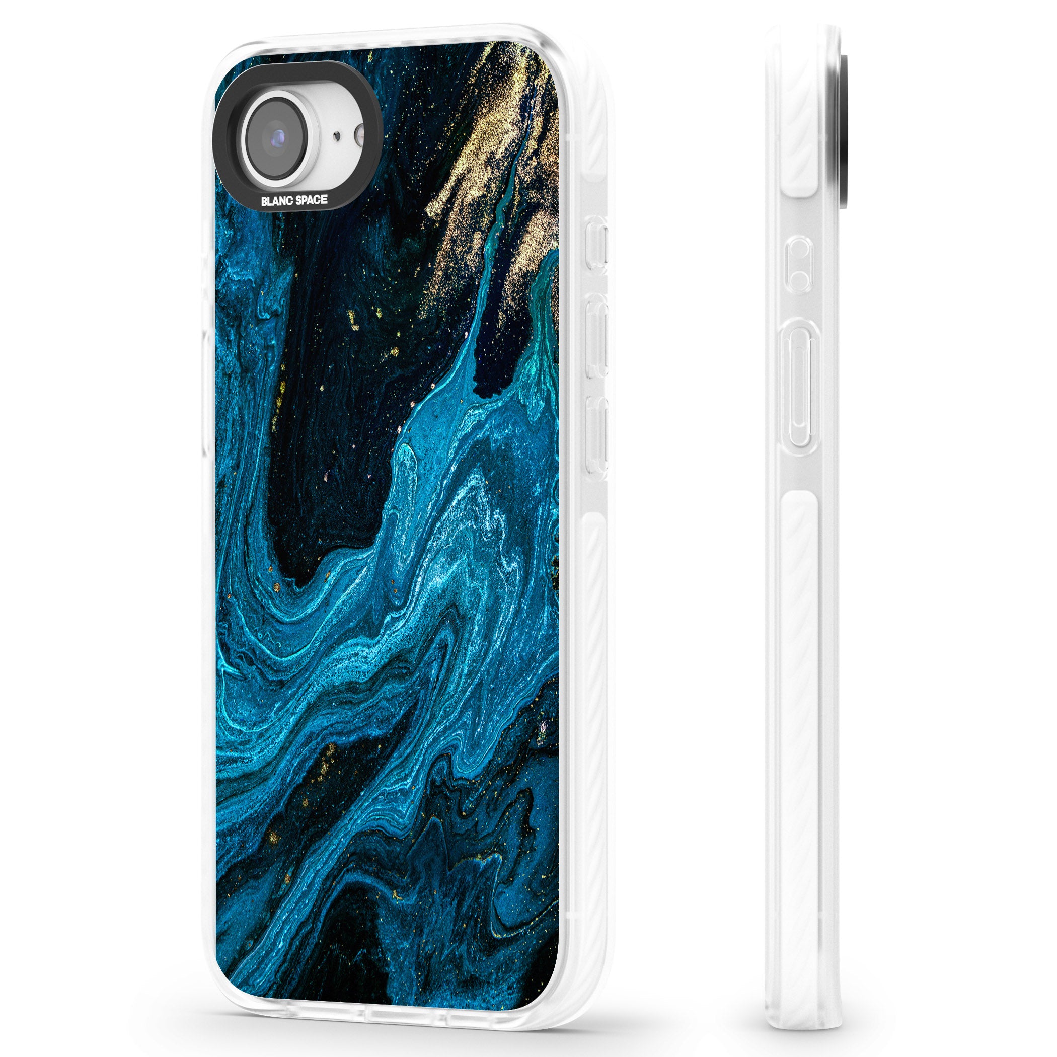 Dive into the swirl of sapphire blues and shimmering gold – your phone deserves this ethereal touch of elegance. Experience both style and protection with this captivating design.