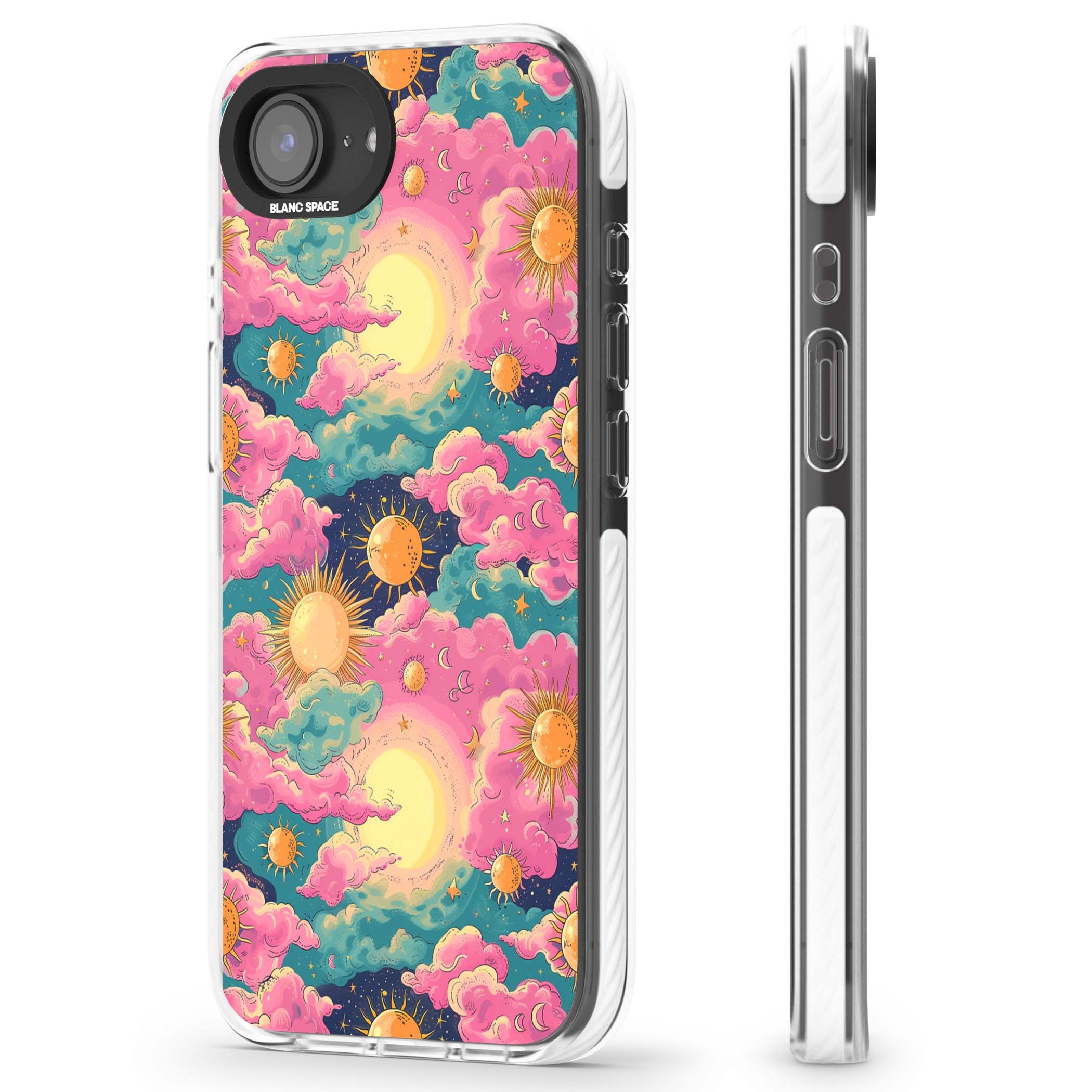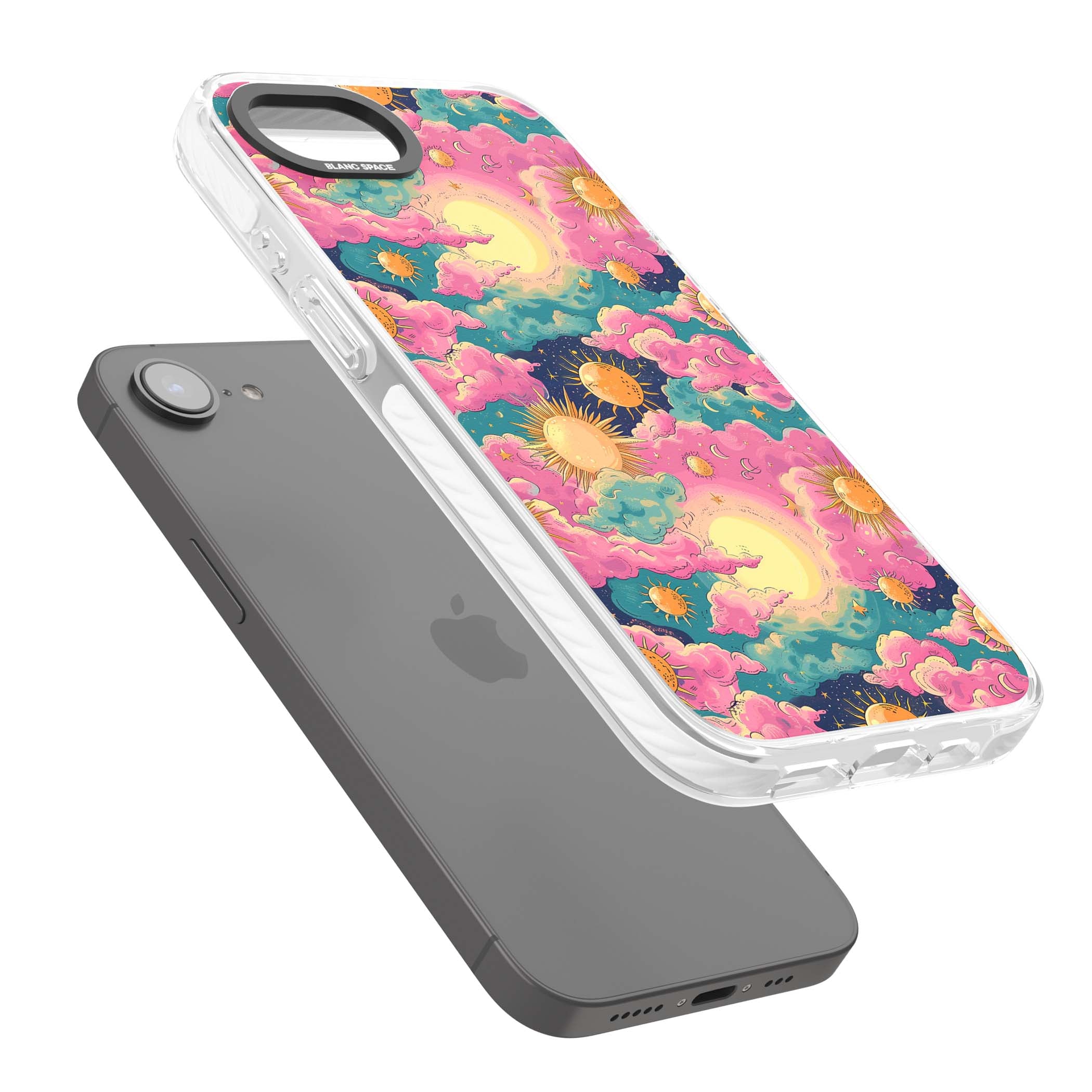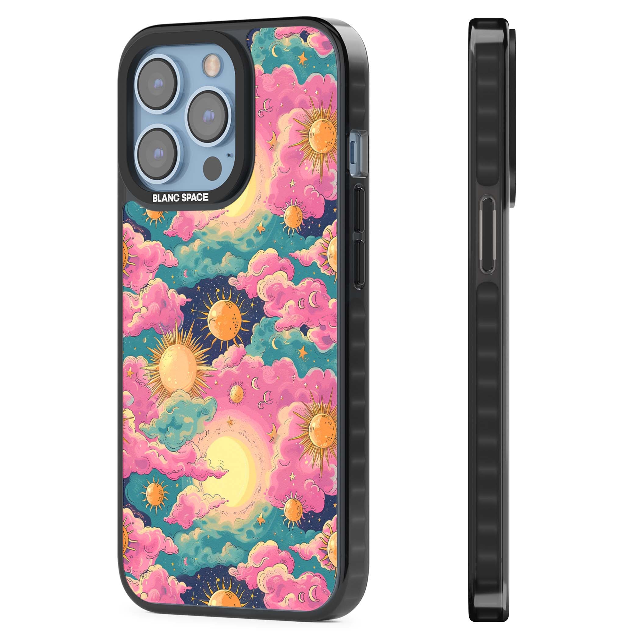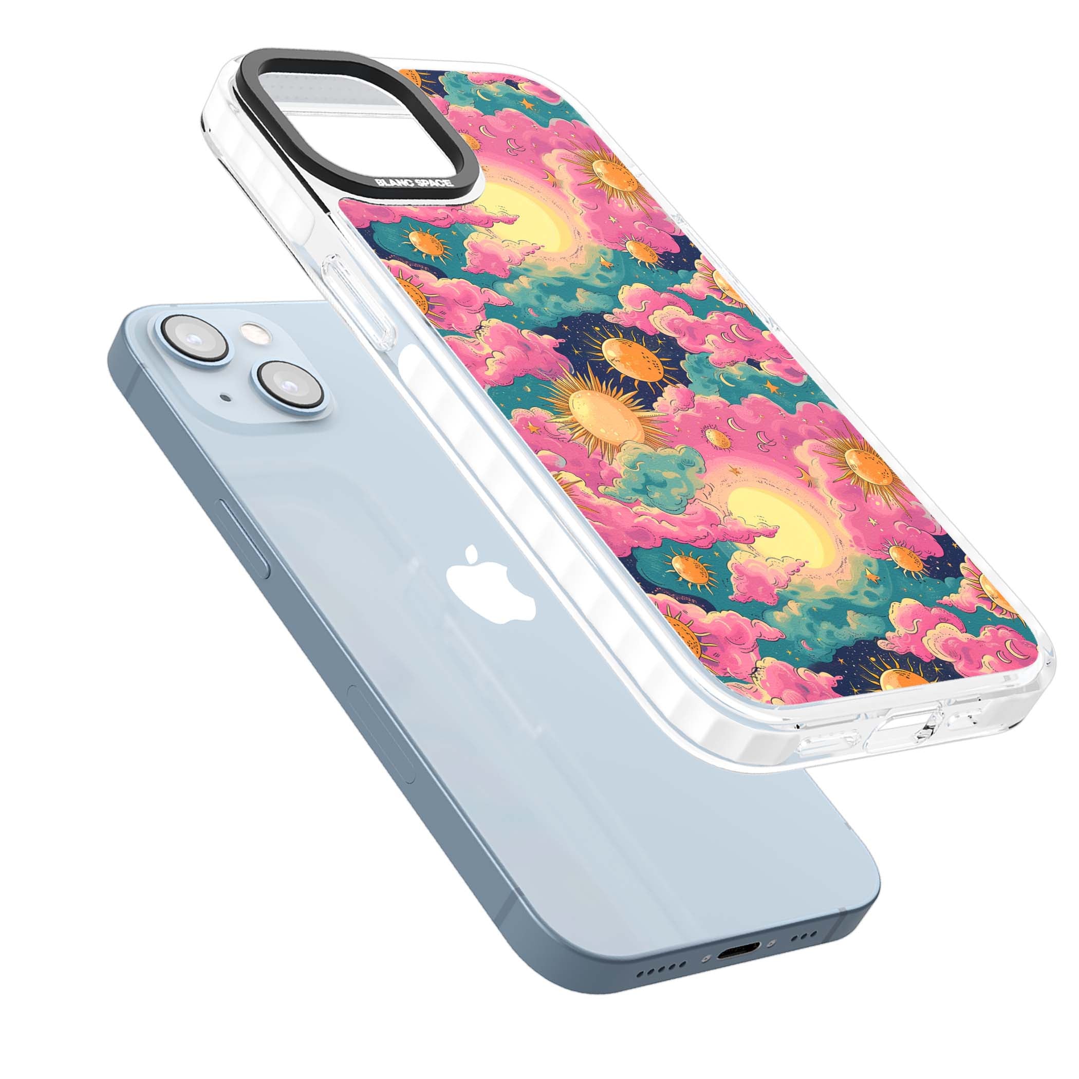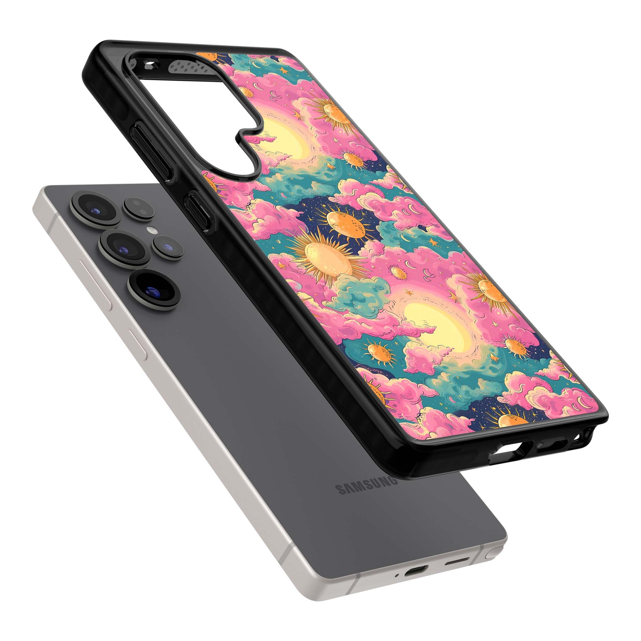 Transform your phone into a canvas of celestial wonders. This phone case delivers a mesmerizing mix of dreamy clouds and radiant suns, offering a look that's both bold and beautiful.