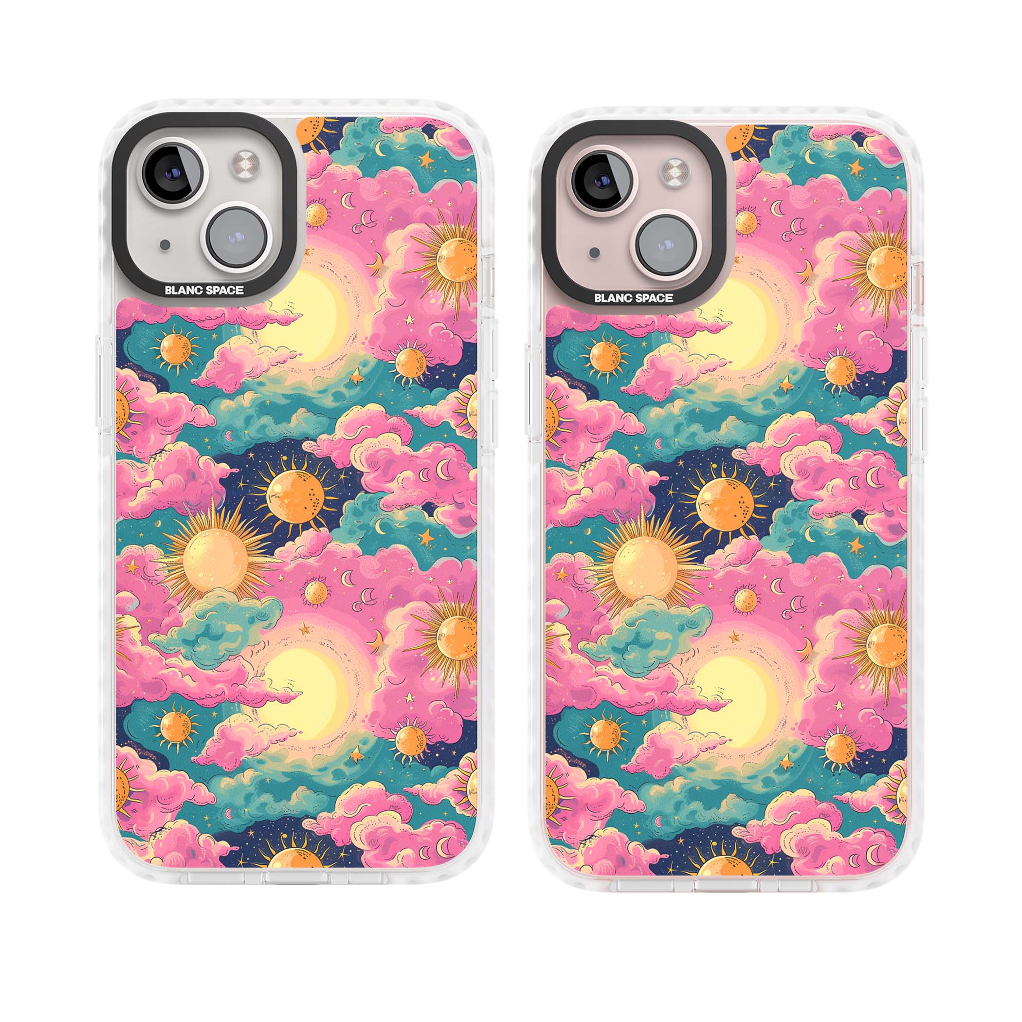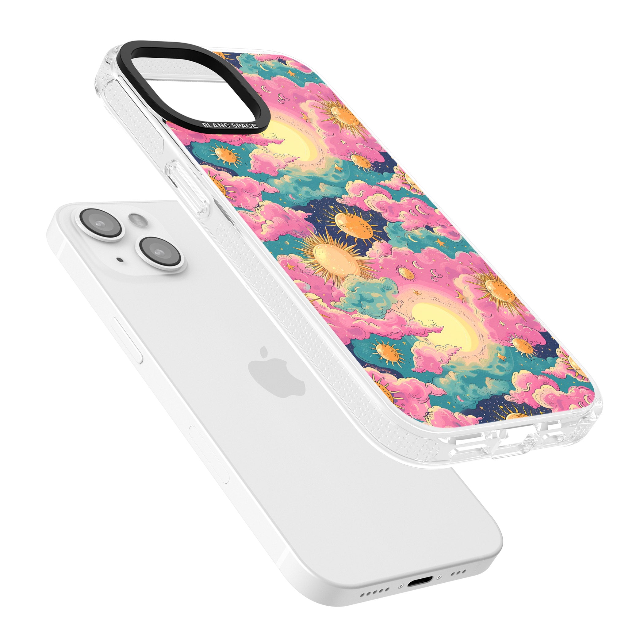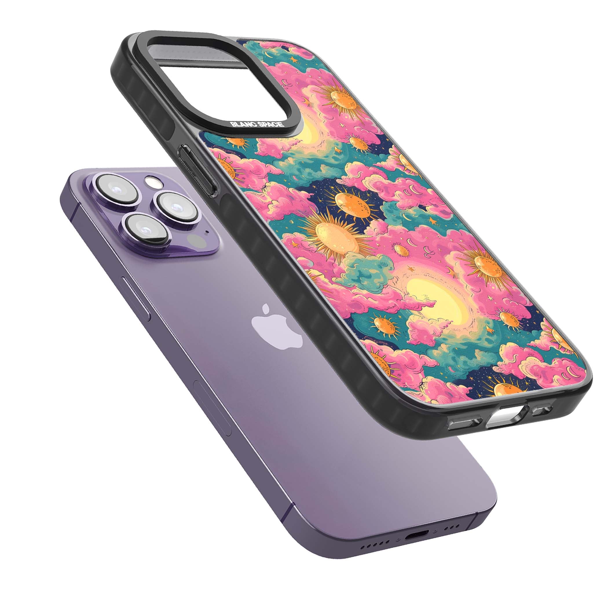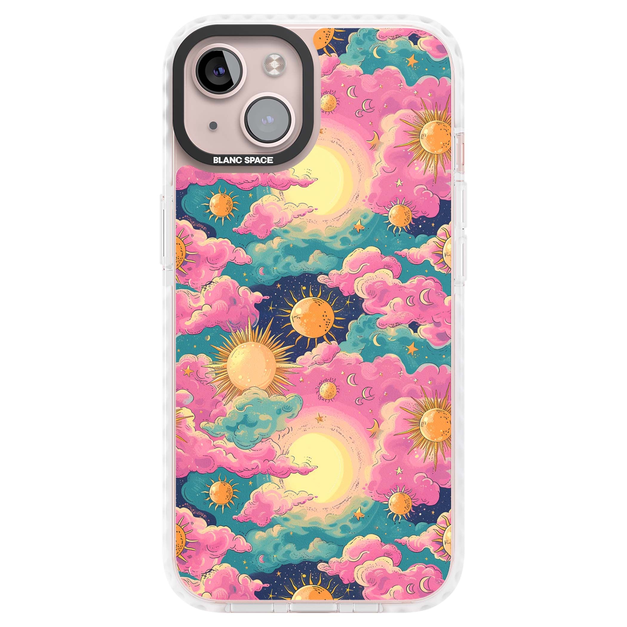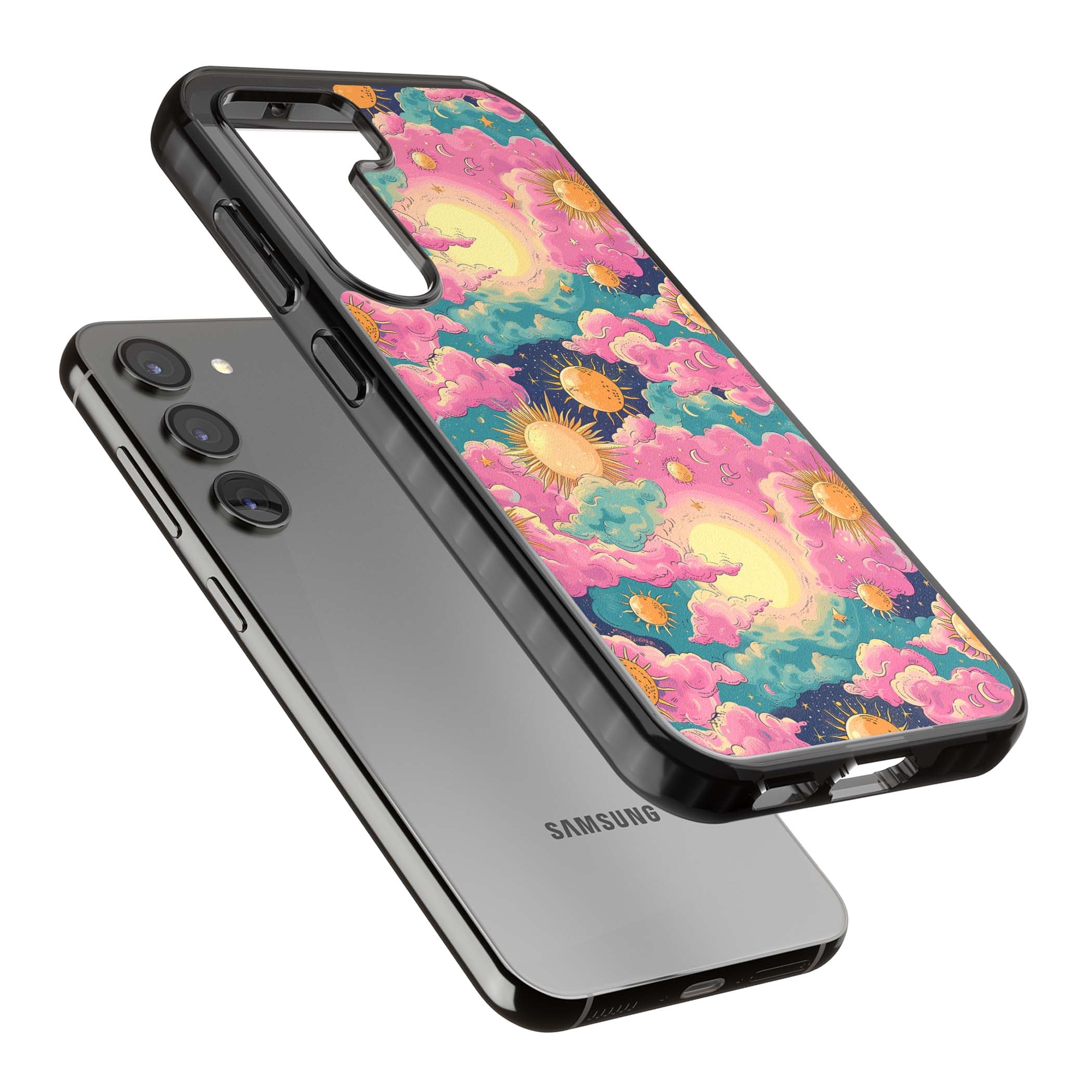 Transform your phone into a canvas of celestial wonders. This phone case delivers a mesmerizing mix of dreamy clouds and radiant suns, offering a look that's both bold and beautiful.