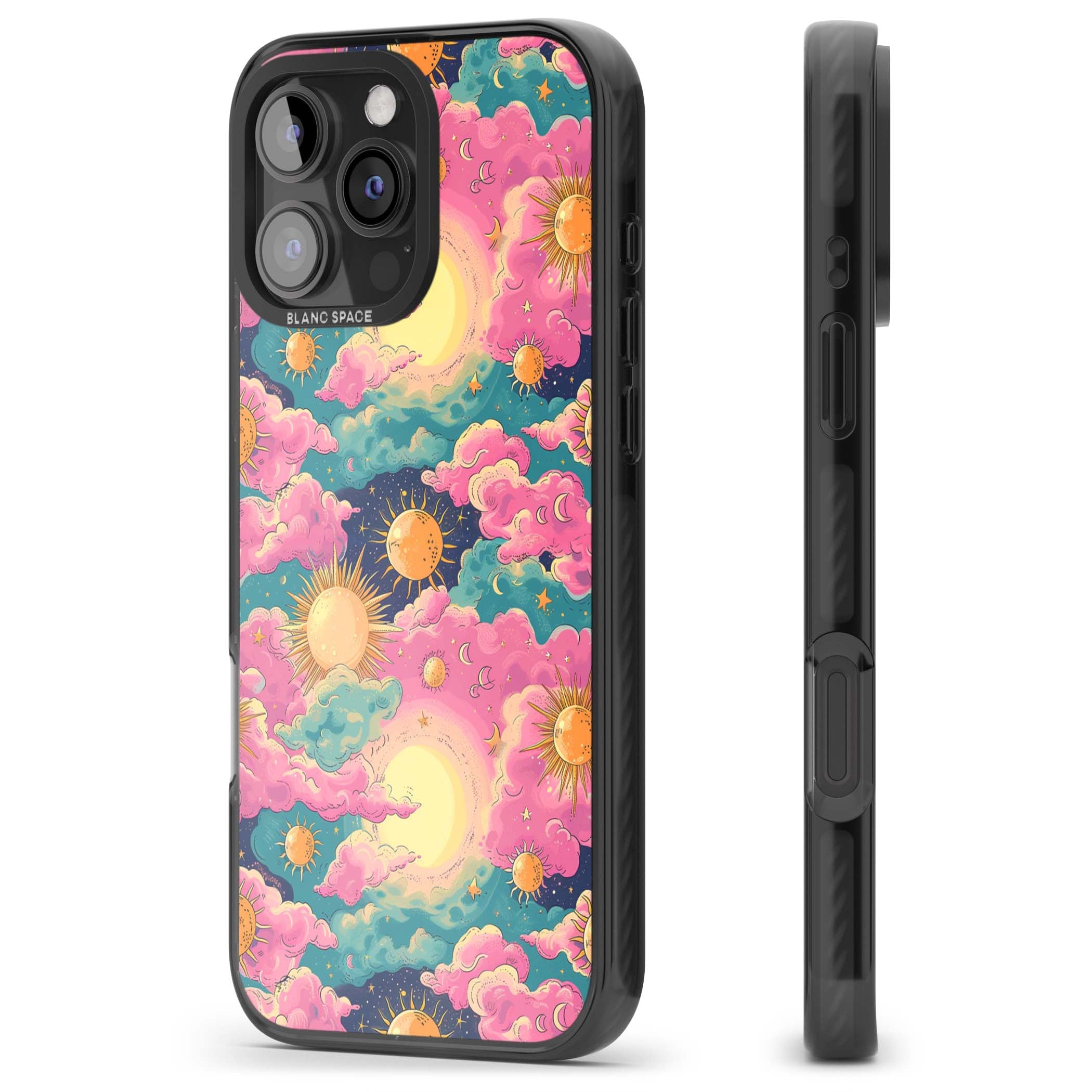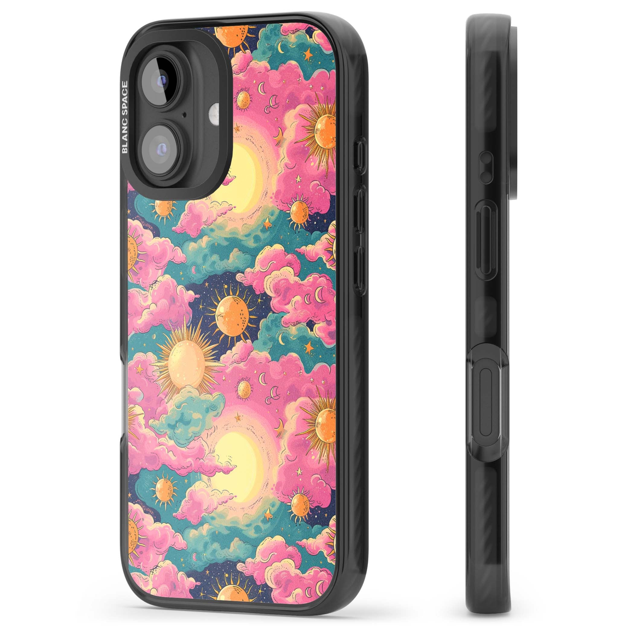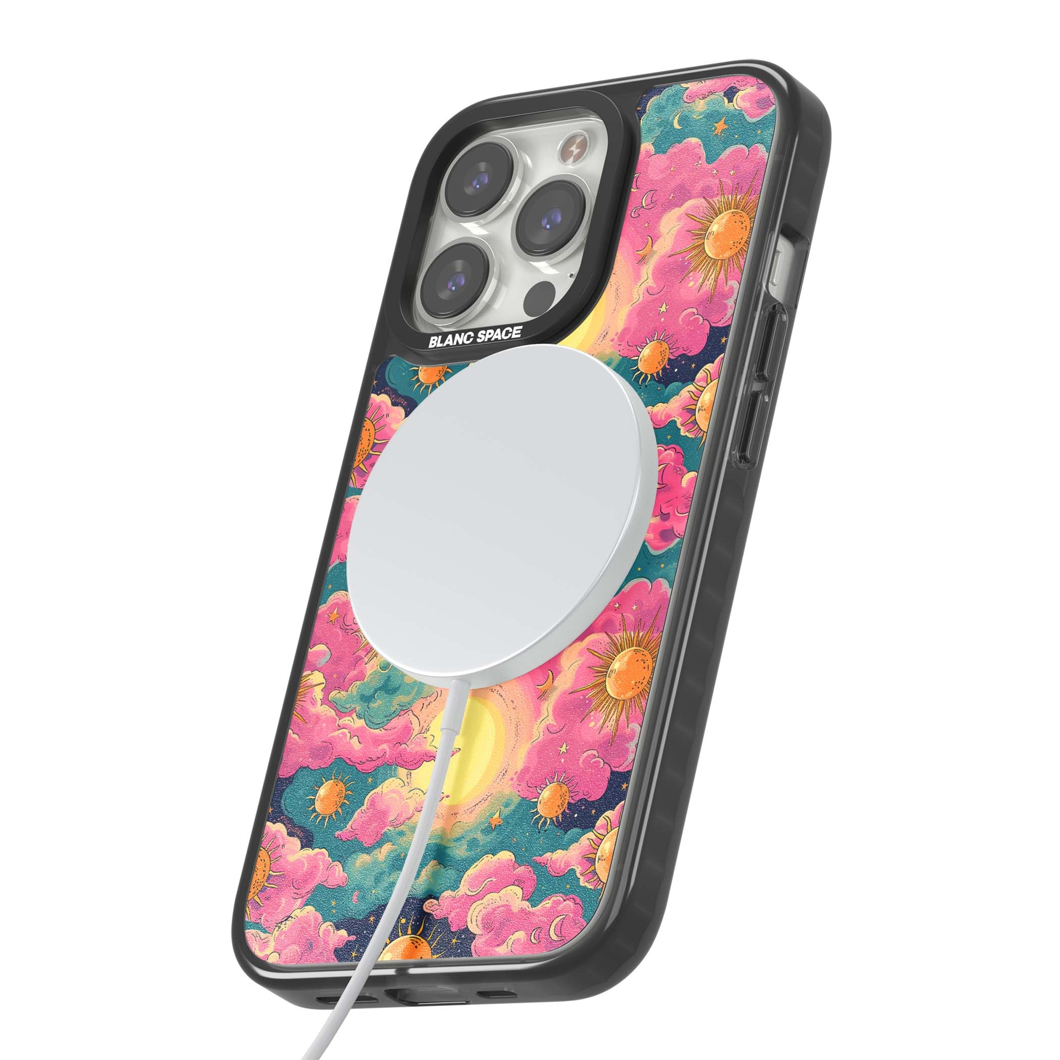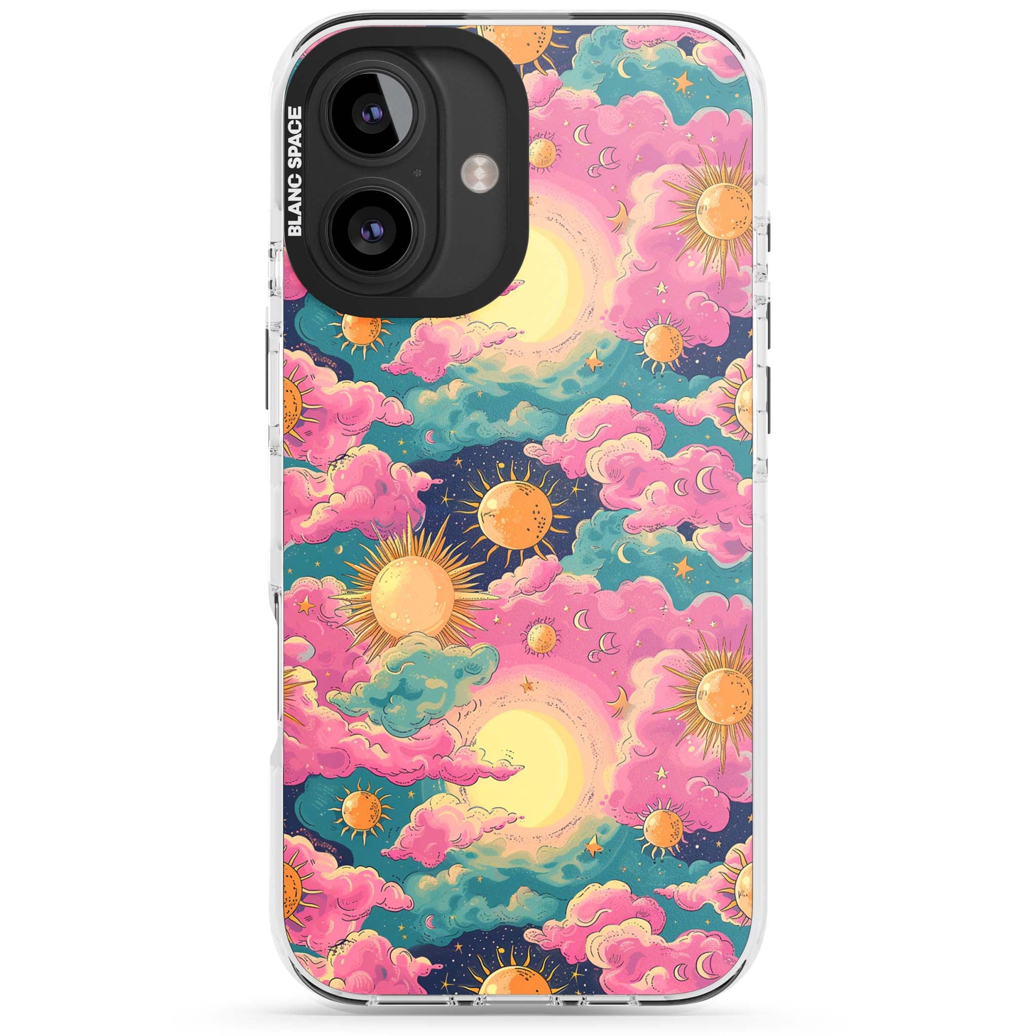 Transform your phone into a canvas of celestial wonders. This phone case delivers a mesmerizing mix of dreamy clouds and radiant suns, offering a look that's both bold and beautiful.