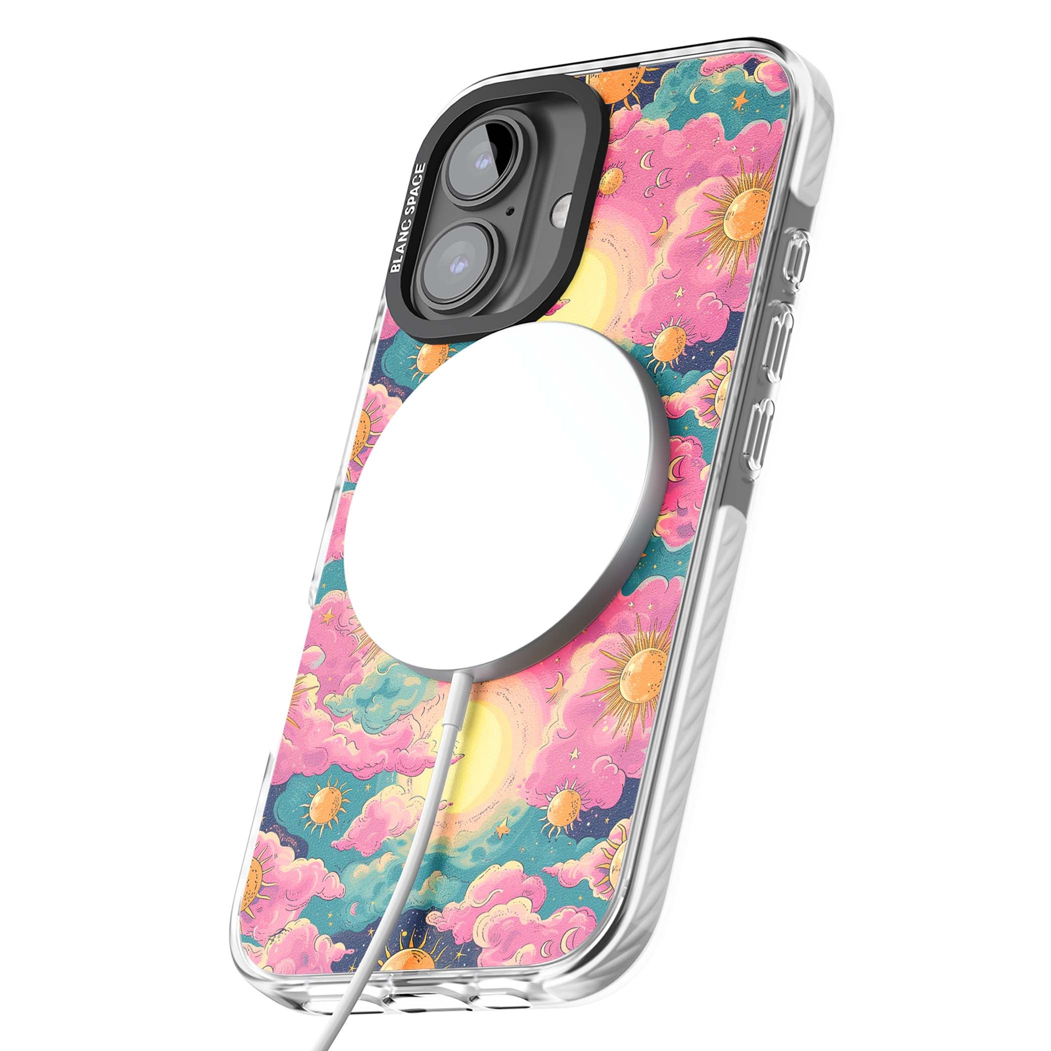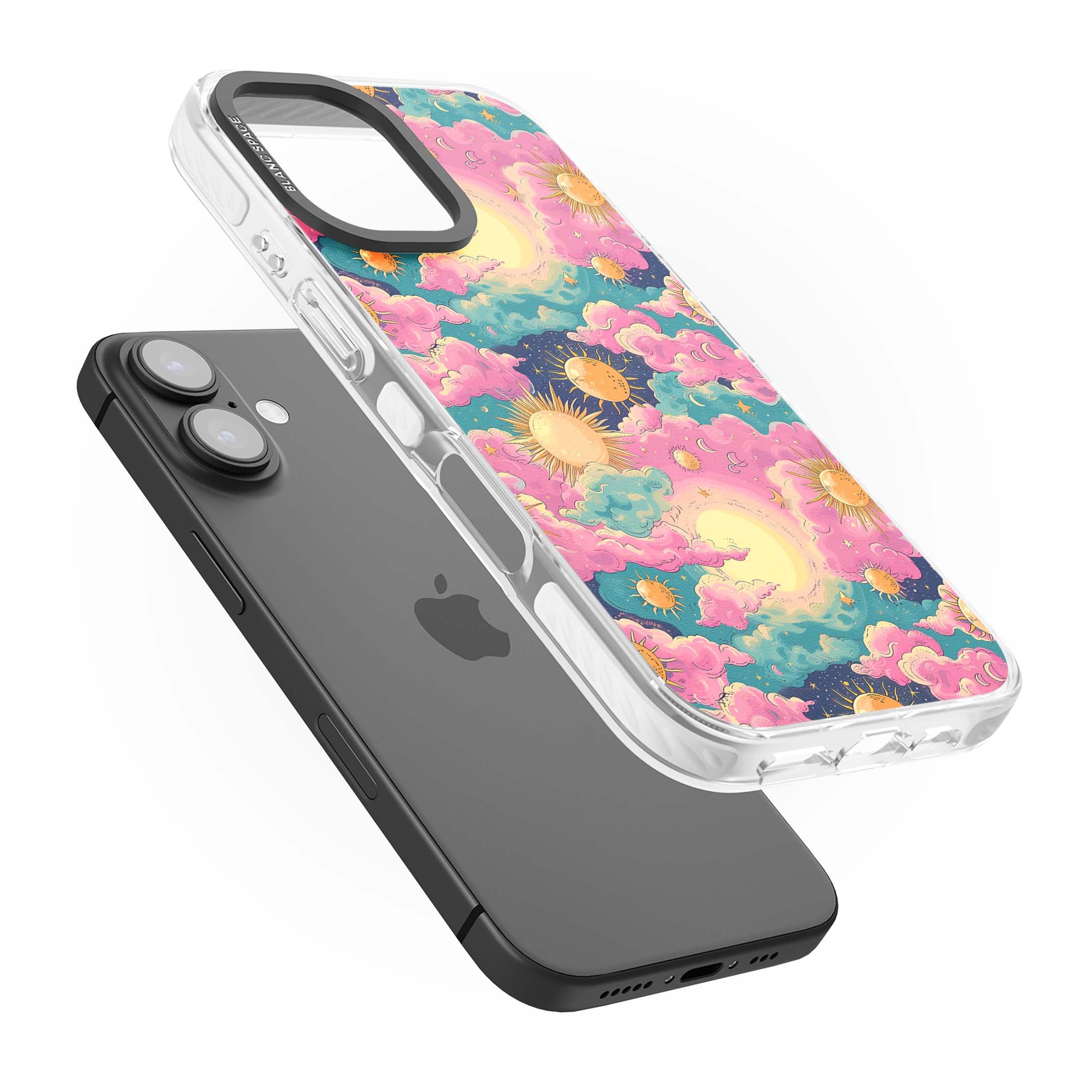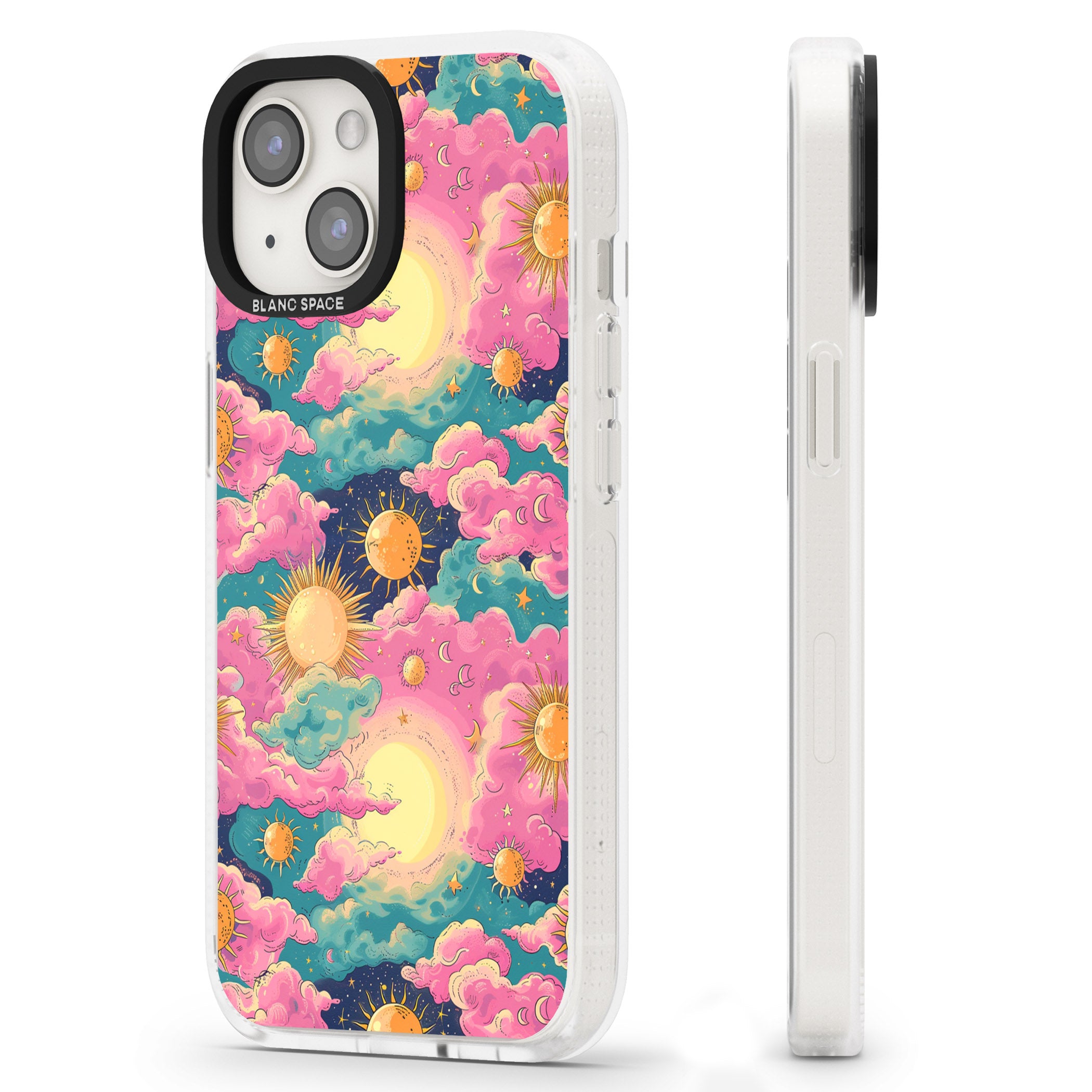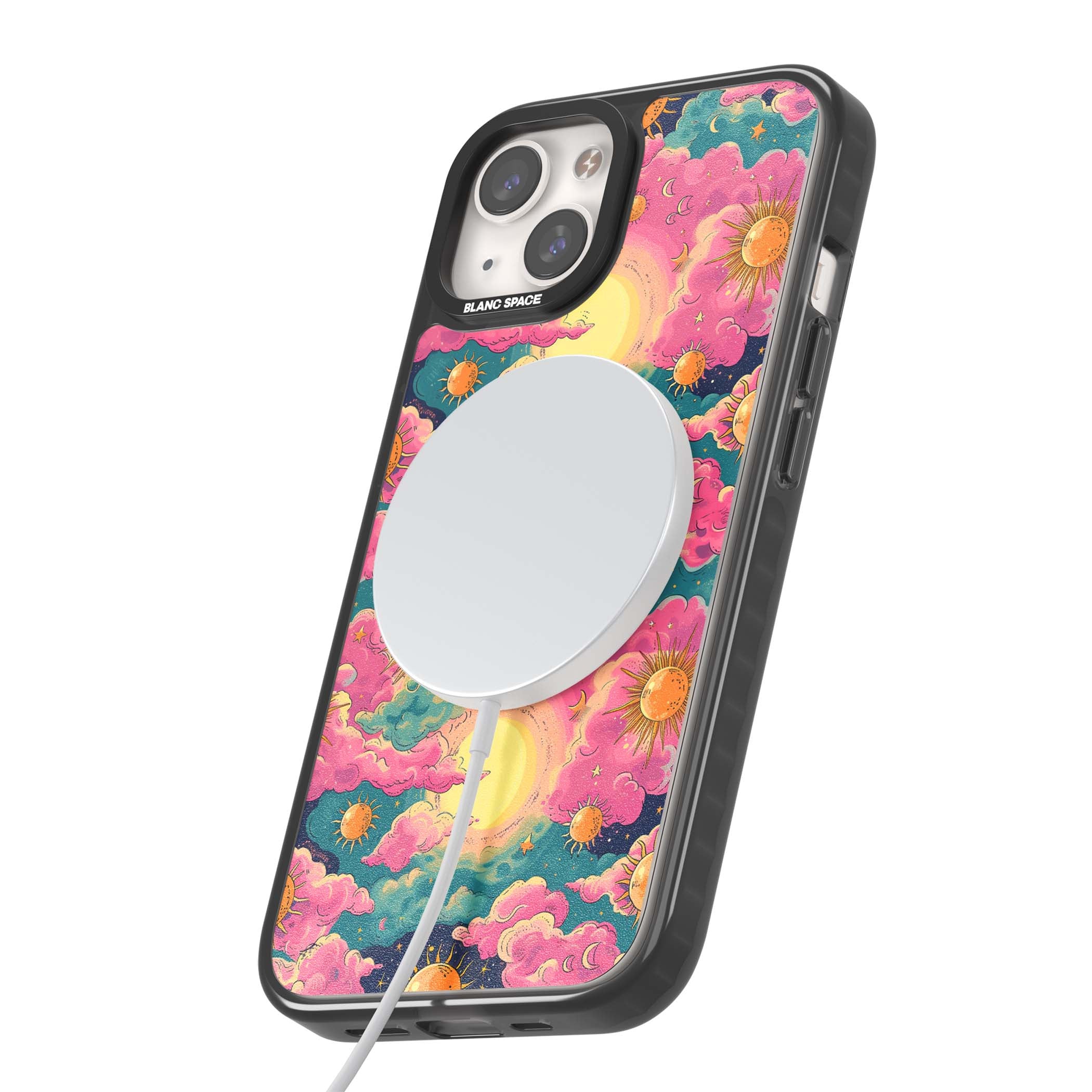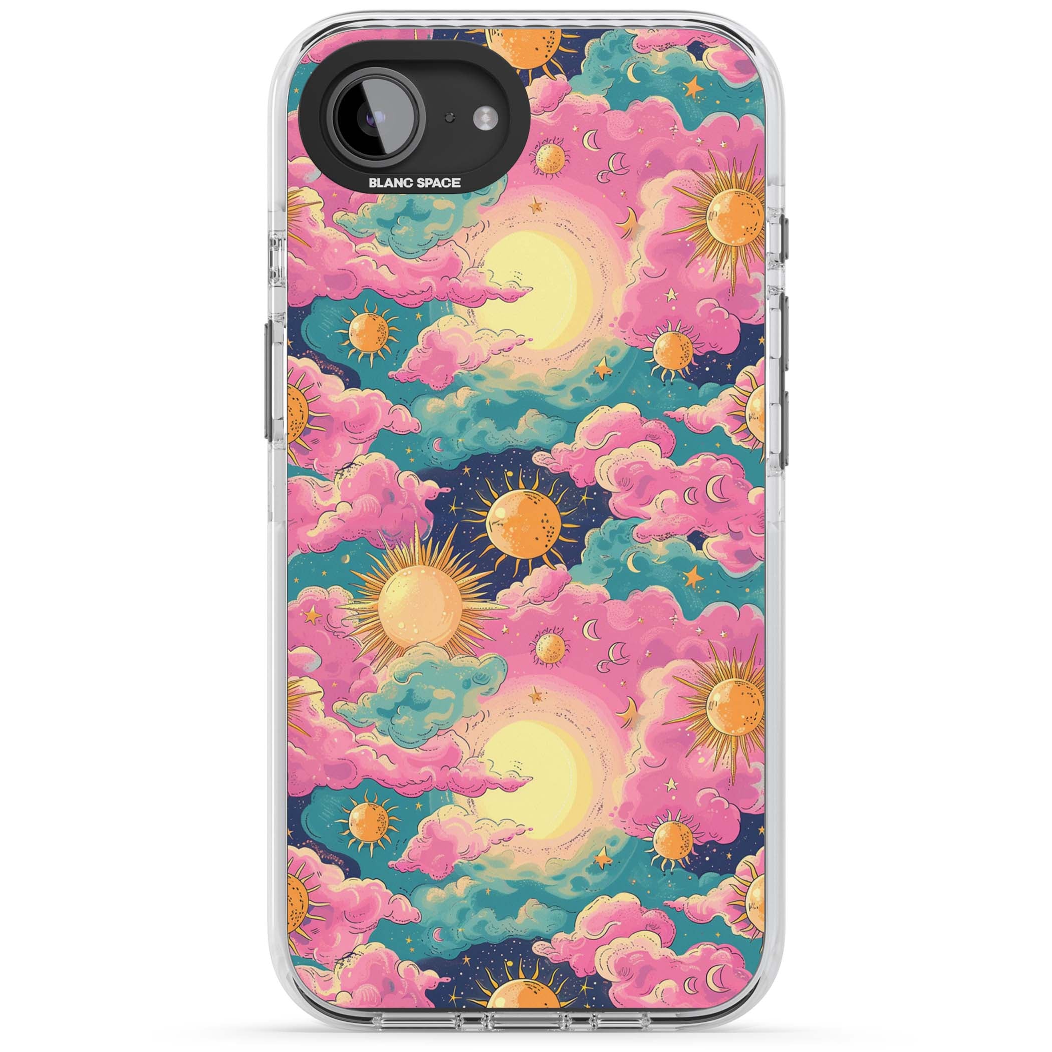 Transform your phone into a canvas of celestial wonders. This phone case delivers a mesmerizing mix of dreamy clouds and radiant suns, offering a look that's both bold and beautiful.
