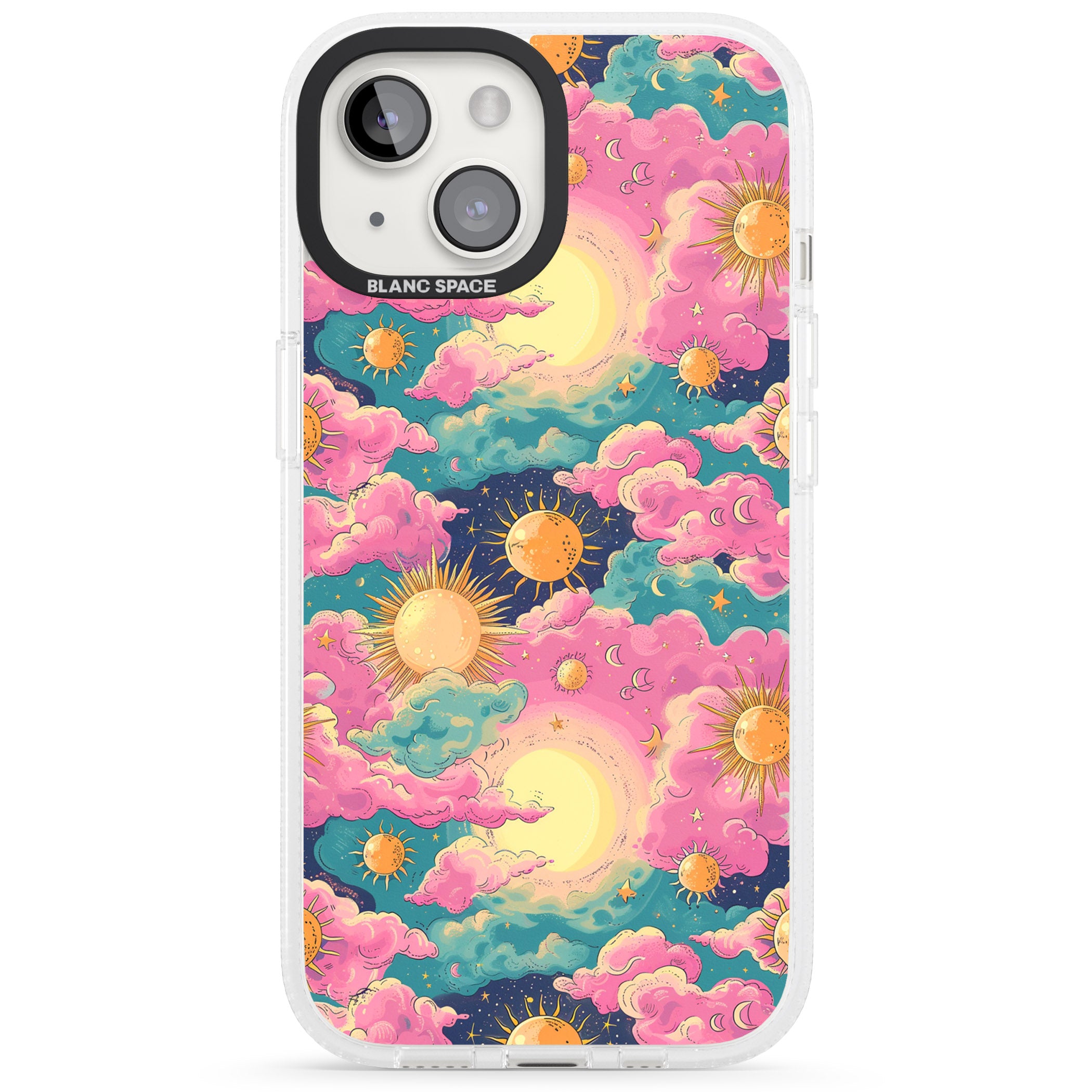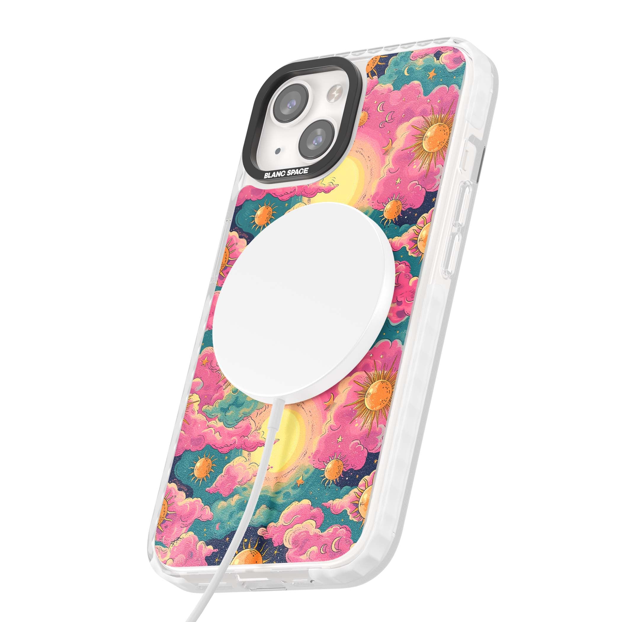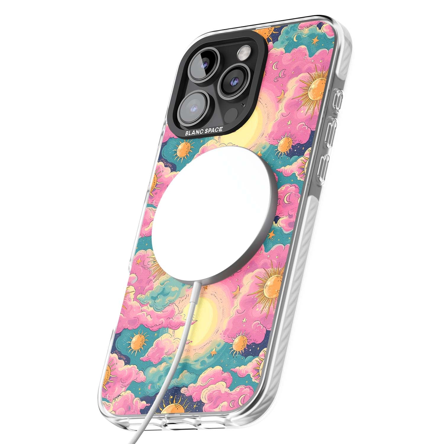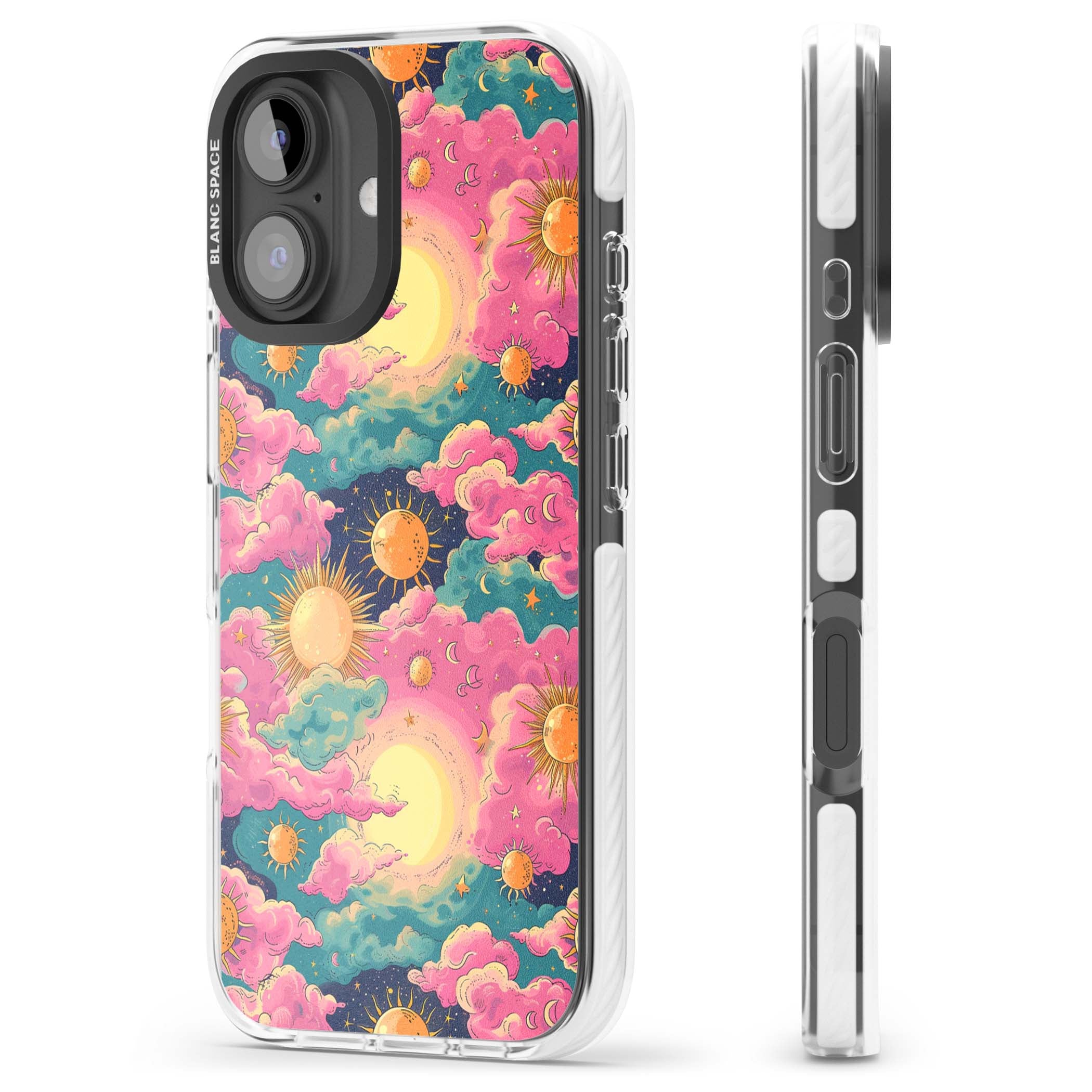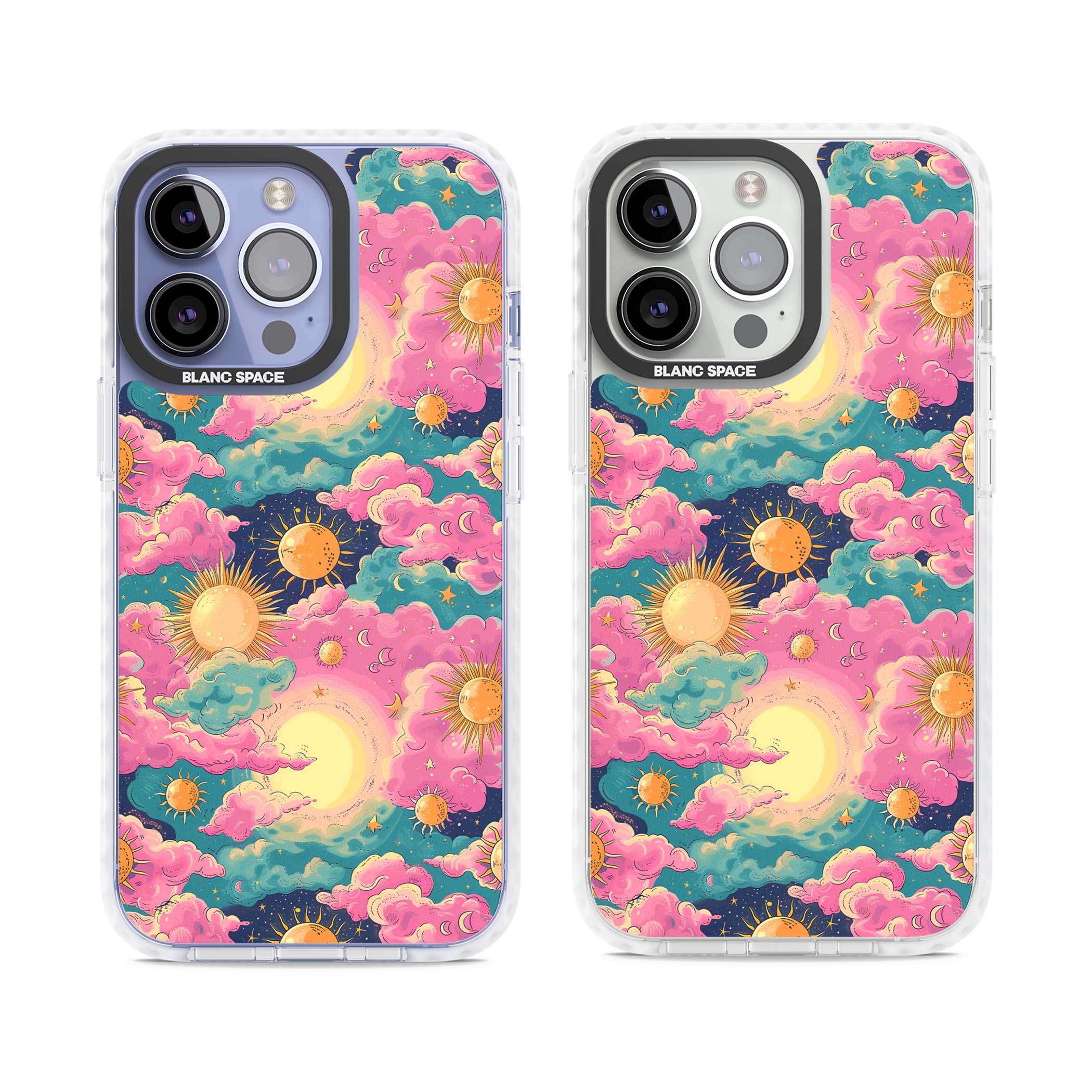 Transform your phone into a canvas of celestial wonders. This phone case delivers a mesmerizing mix of dreamy clouds and radiant suns, offering a look that's both bold and beautiful.