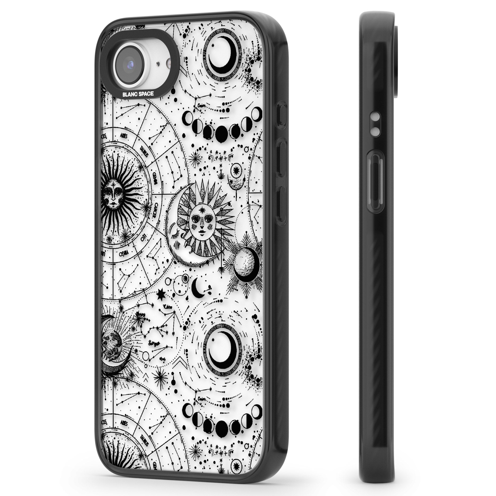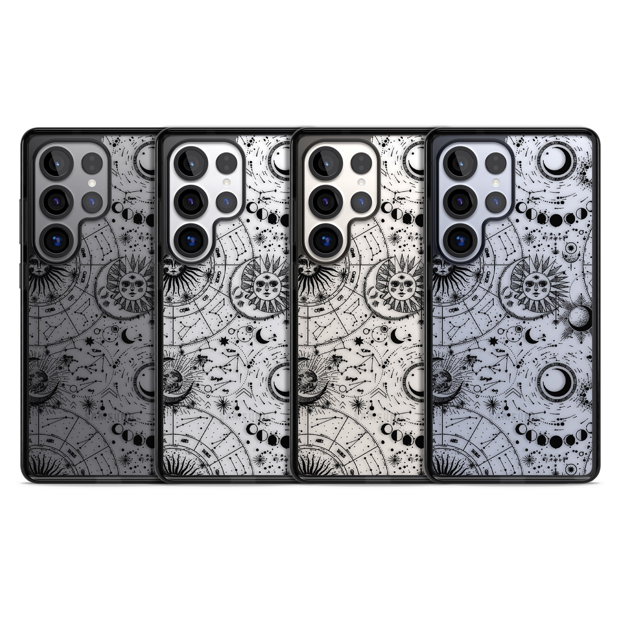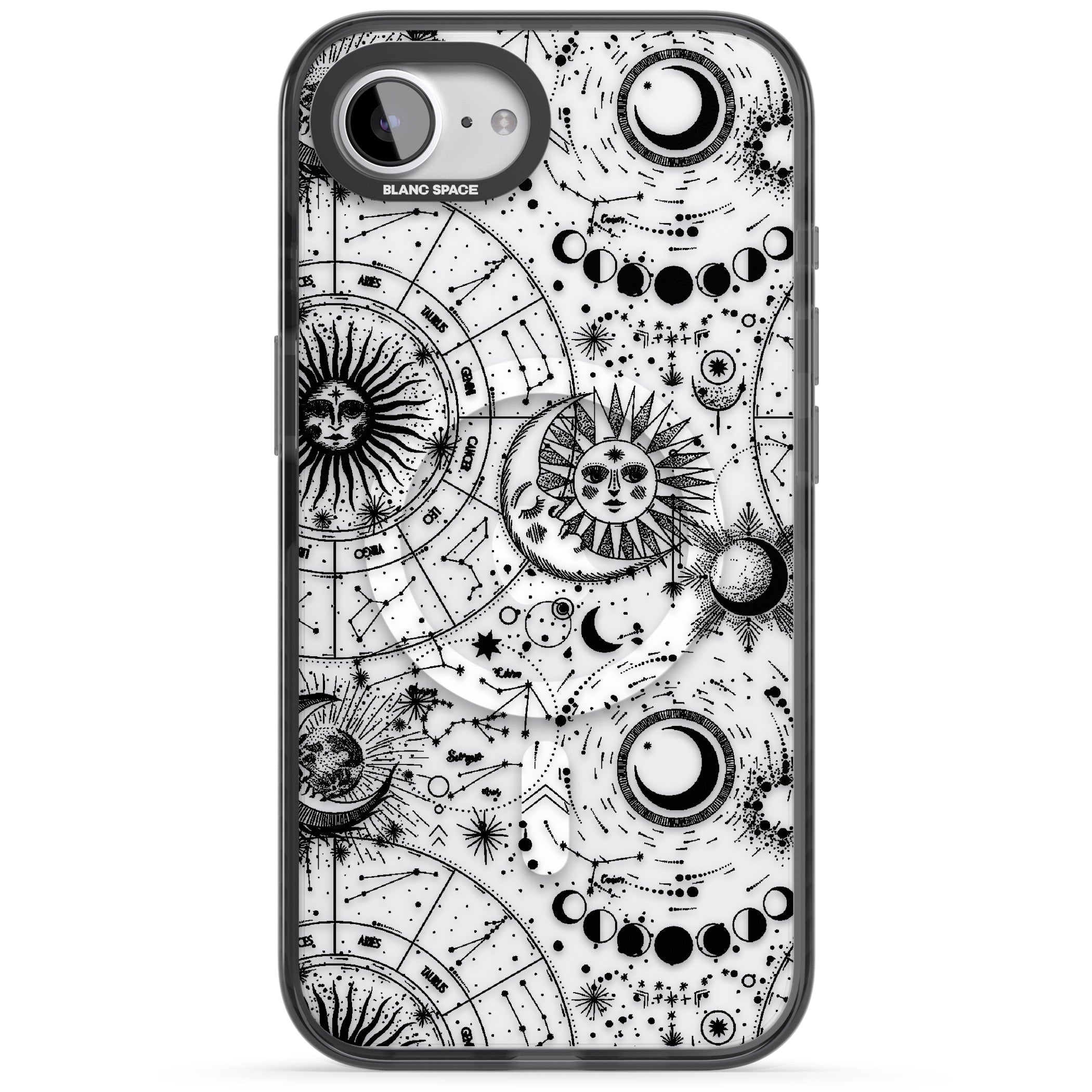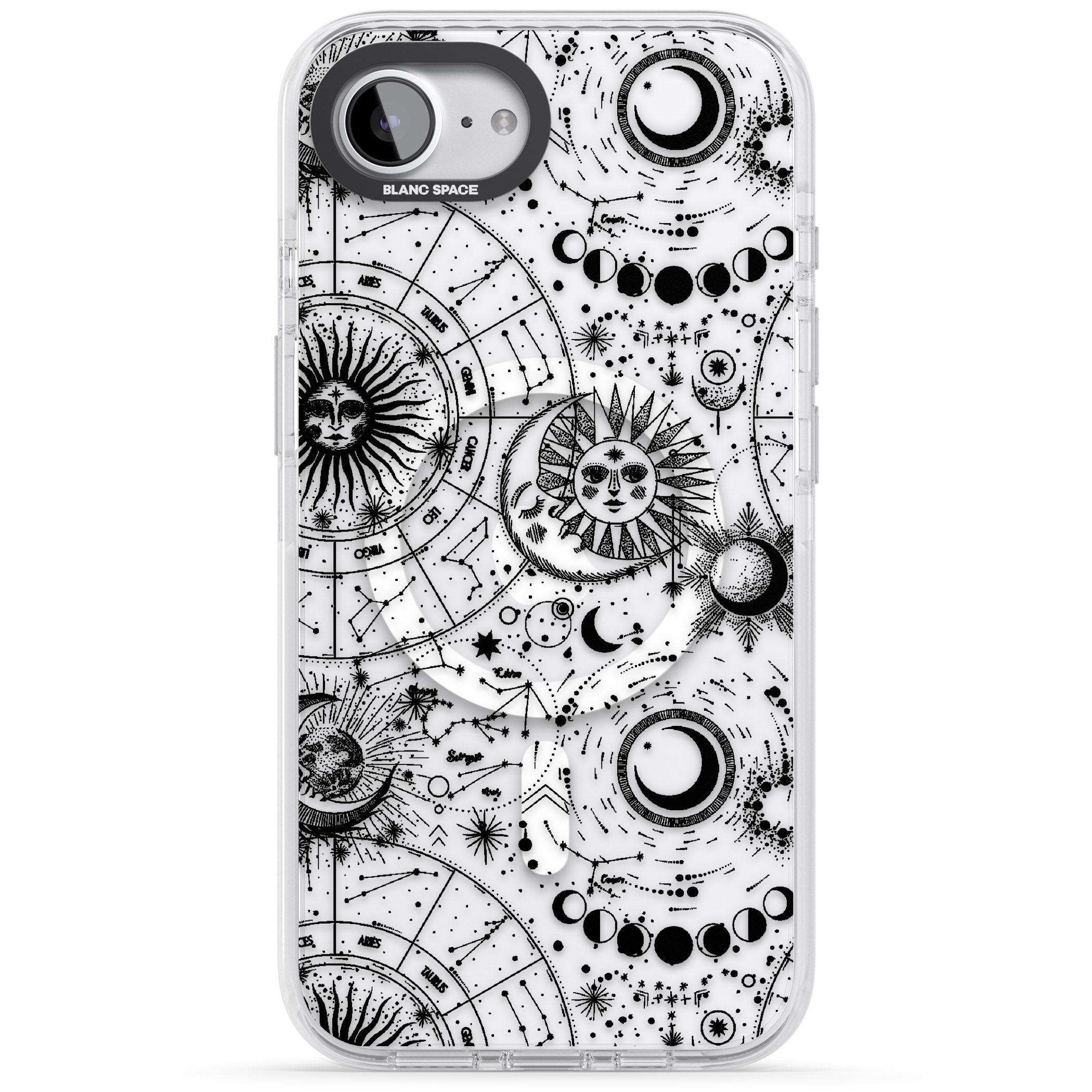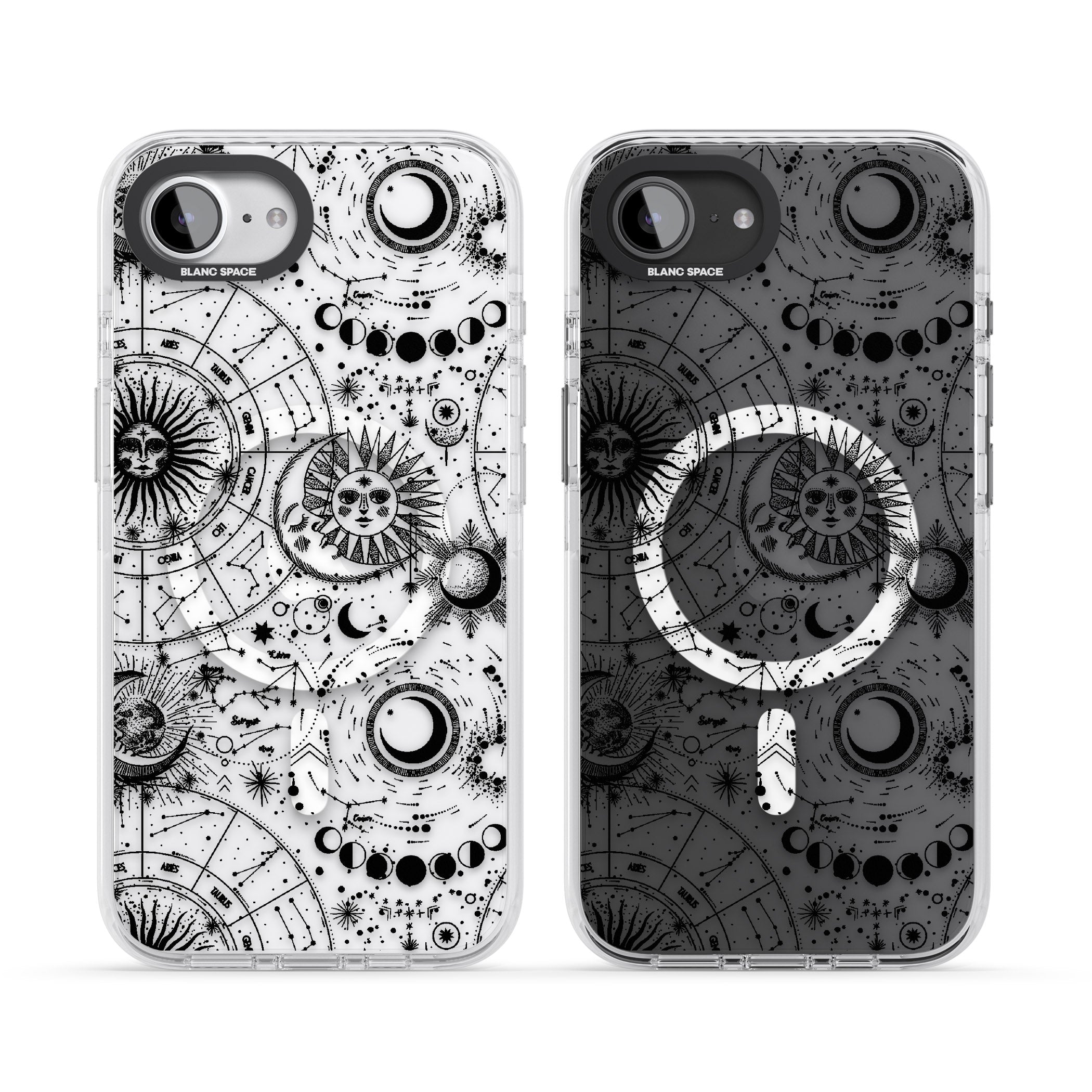 Channel the magic of the universe with this cosmic-chic phone case. Covered in mystical suns, moons, and zodiac constellations, it’s your daily dose of starry-eyed style.