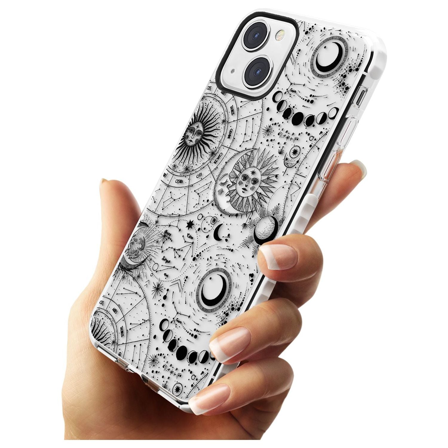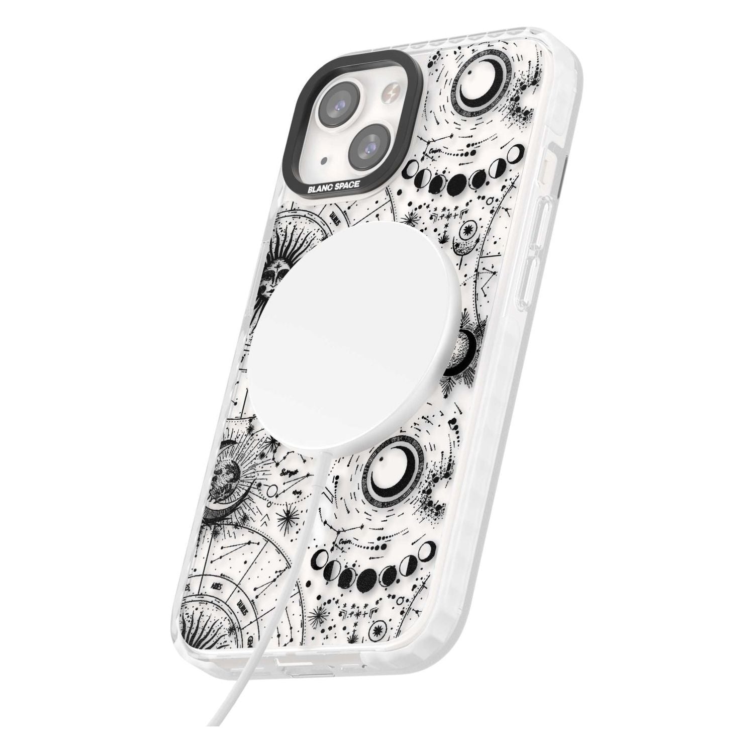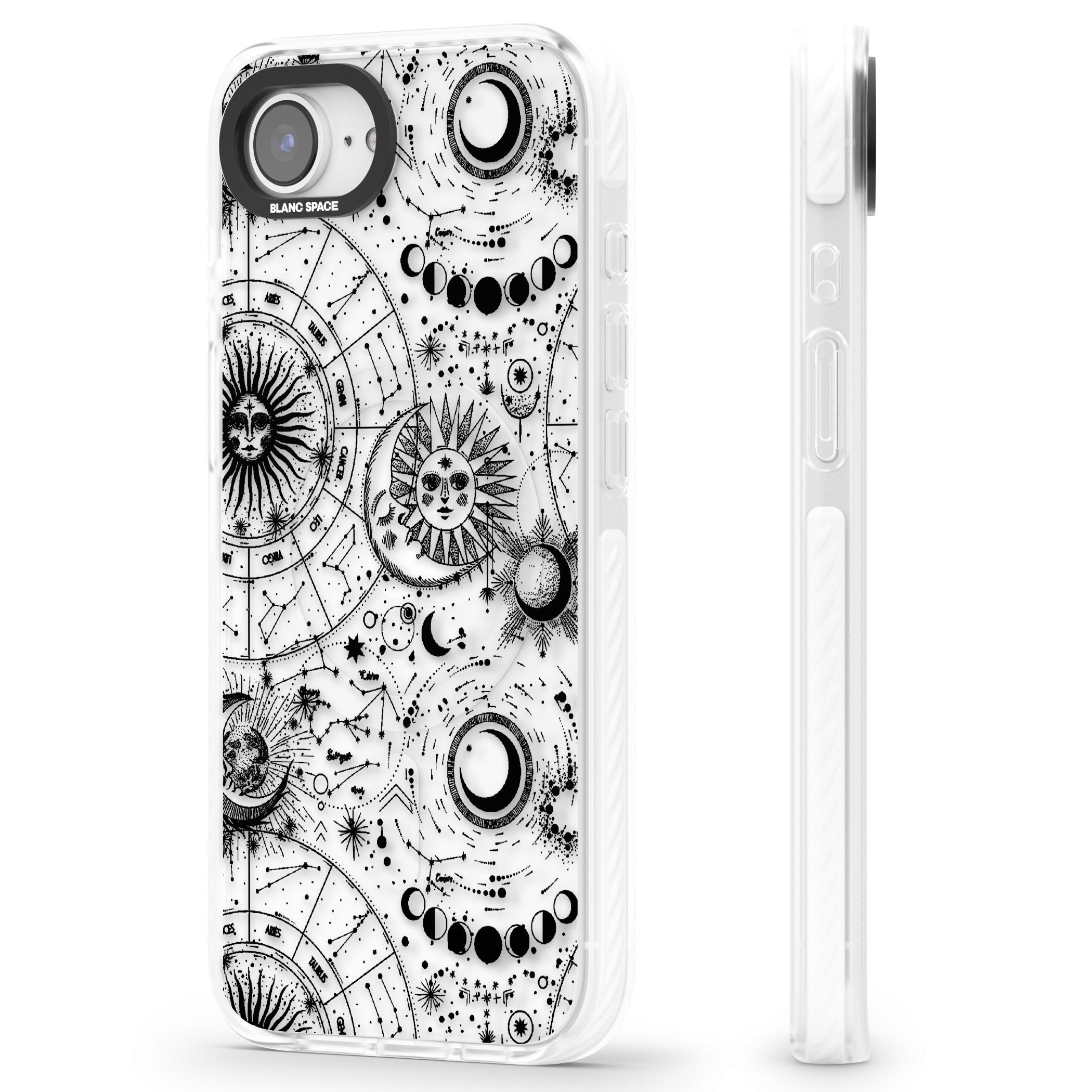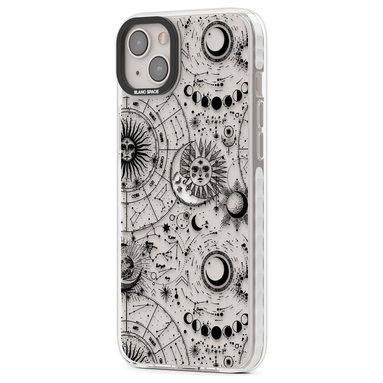 Channel the magic of the universe with this cosmic-chic phone case. Covered in mystical suns, moons, and zodiac constellations, it’s your daily dose of starry-eyed style.