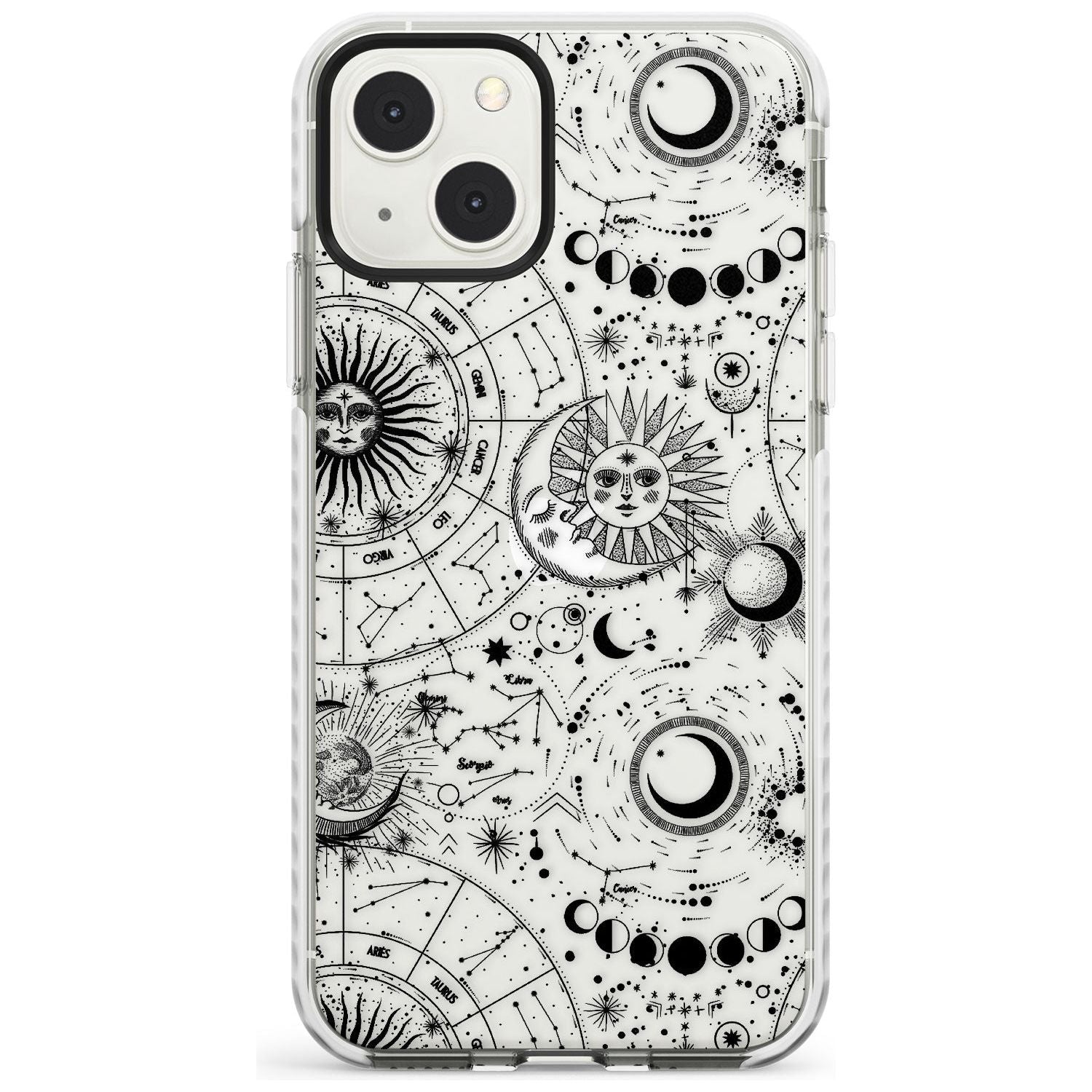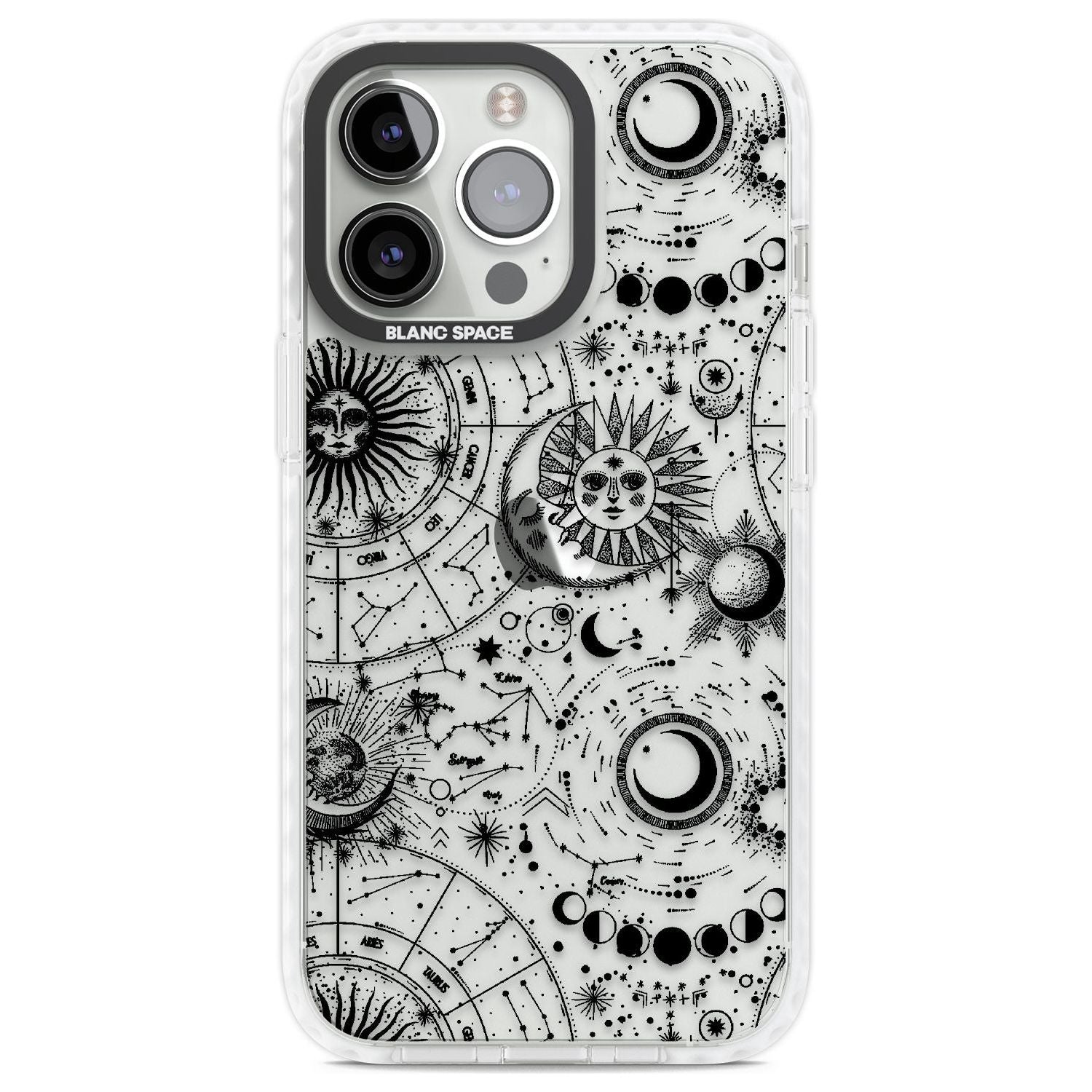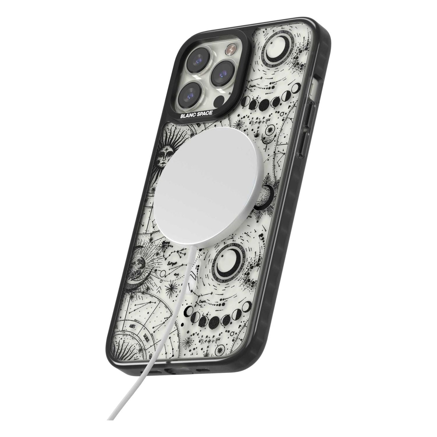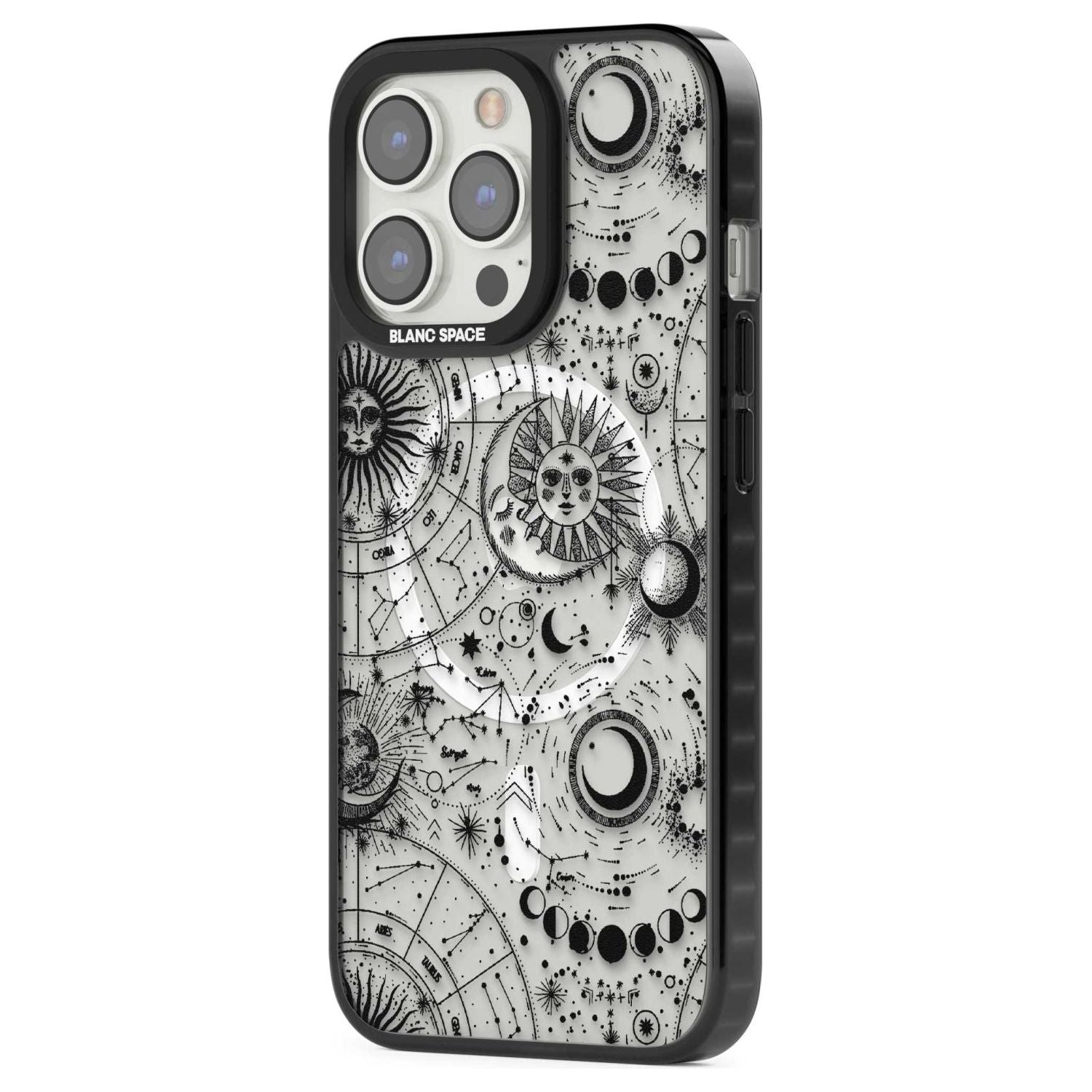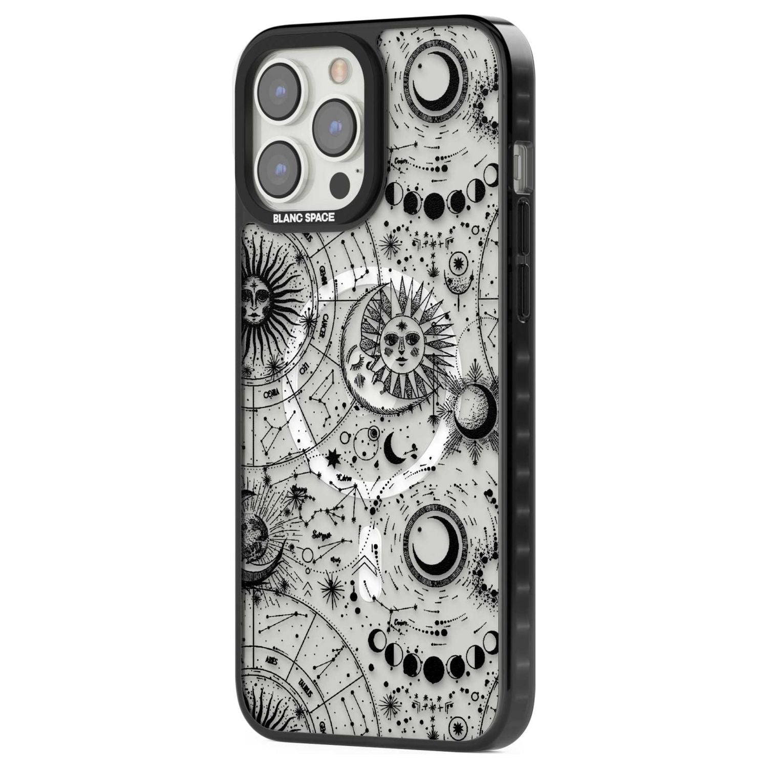 Channel the magic of the universe with this cosmic-chic phone case. Covered in mystical suns, moons, and zodiac constellations, it’s your daily dose of starry-eyed style.
