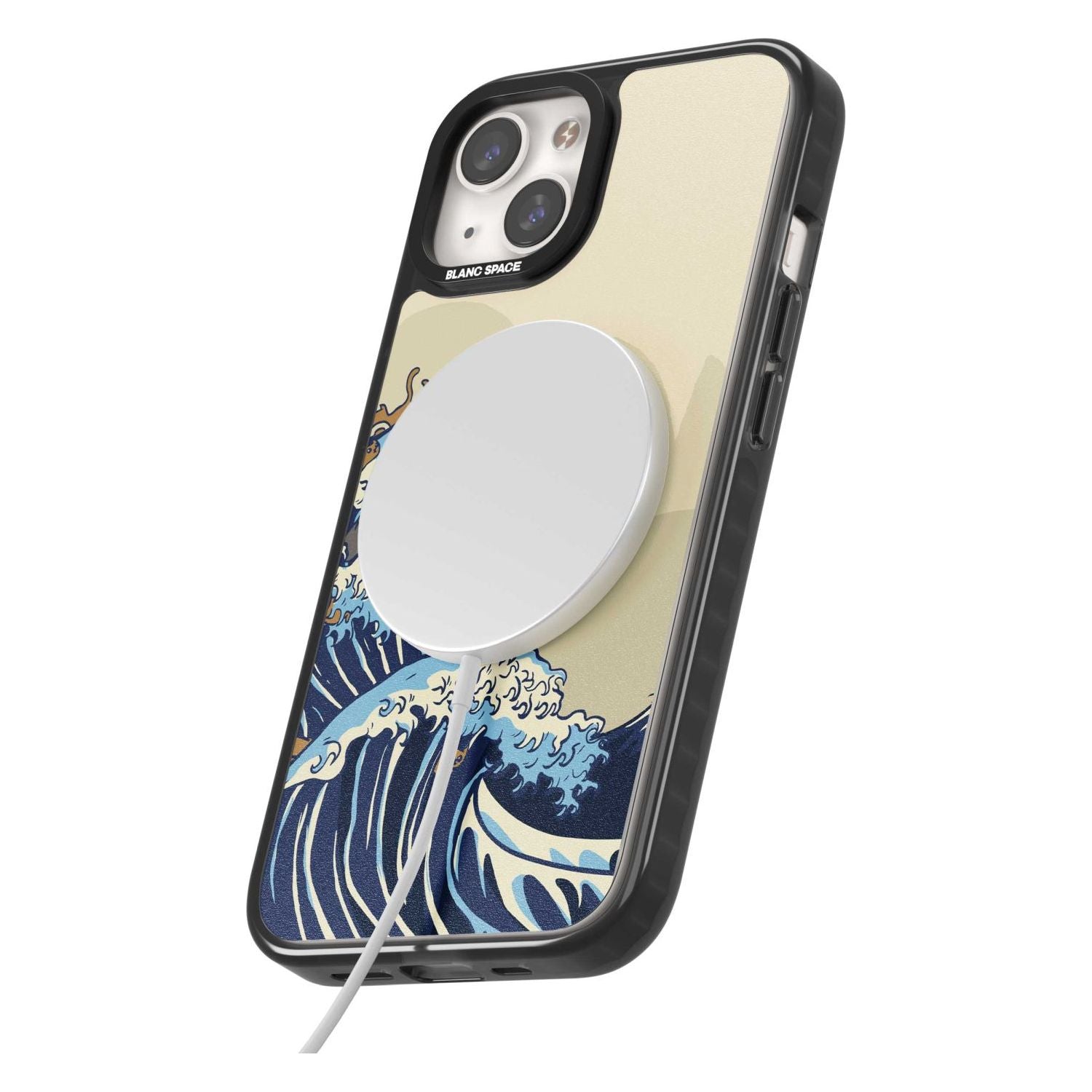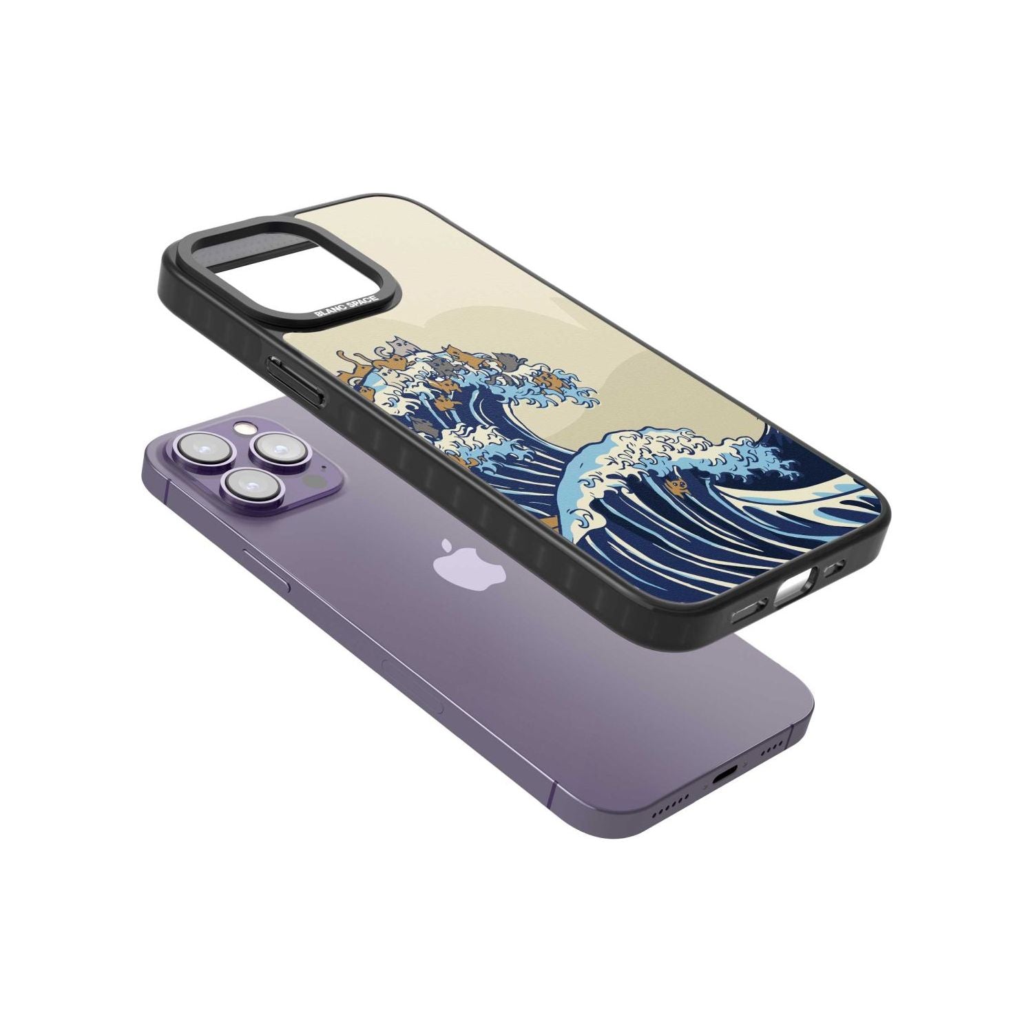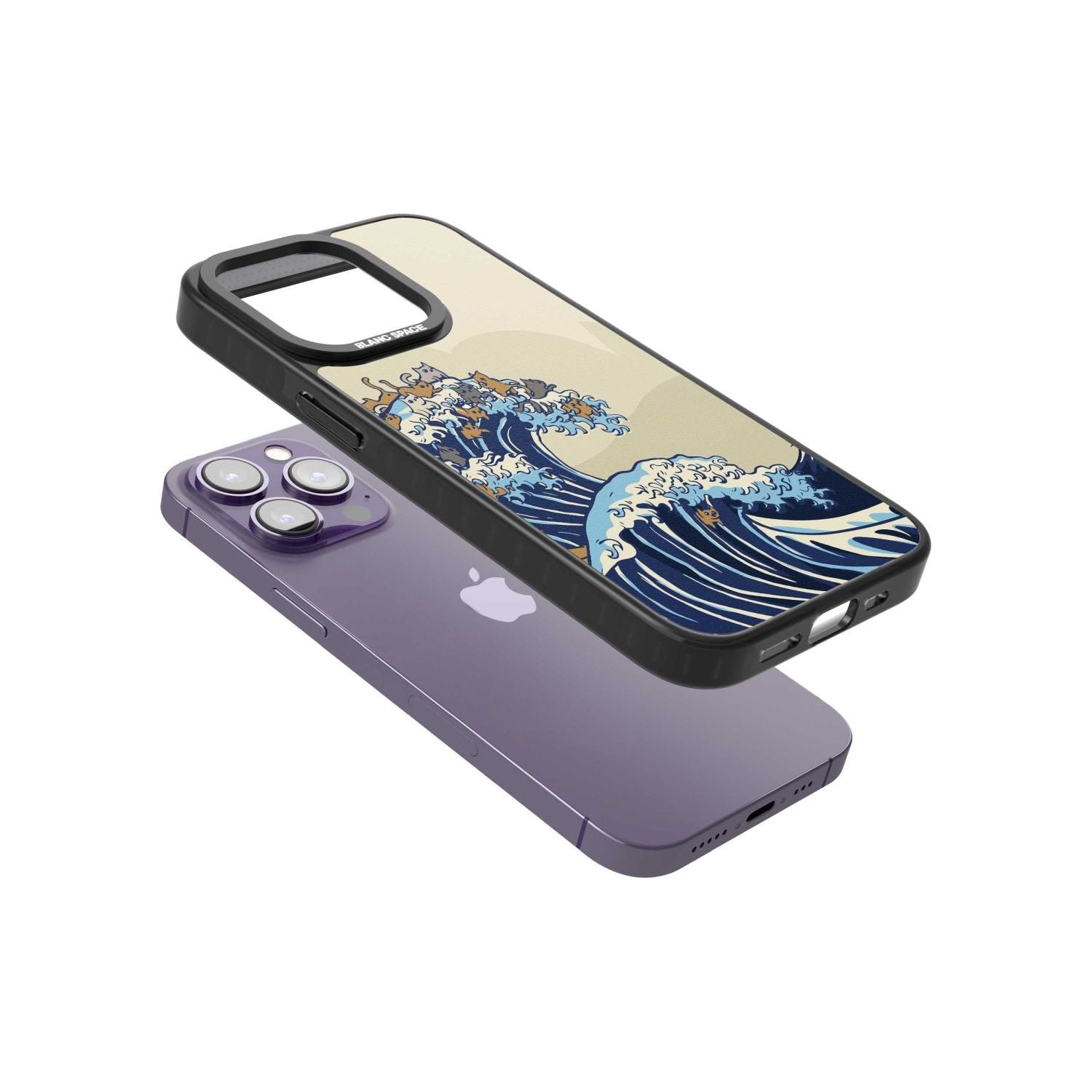 This phone case showcases a delightful fusion of cats and classic art, presenting a wave reminiscent of traditional Japanese woodblock prints. Compatible with both iPhone and Samsung models, this case emphasizes your unique personality while offering robust protection. Celebrate your love for art and feline antics, expressing yourself with a touch of playful sophistication!