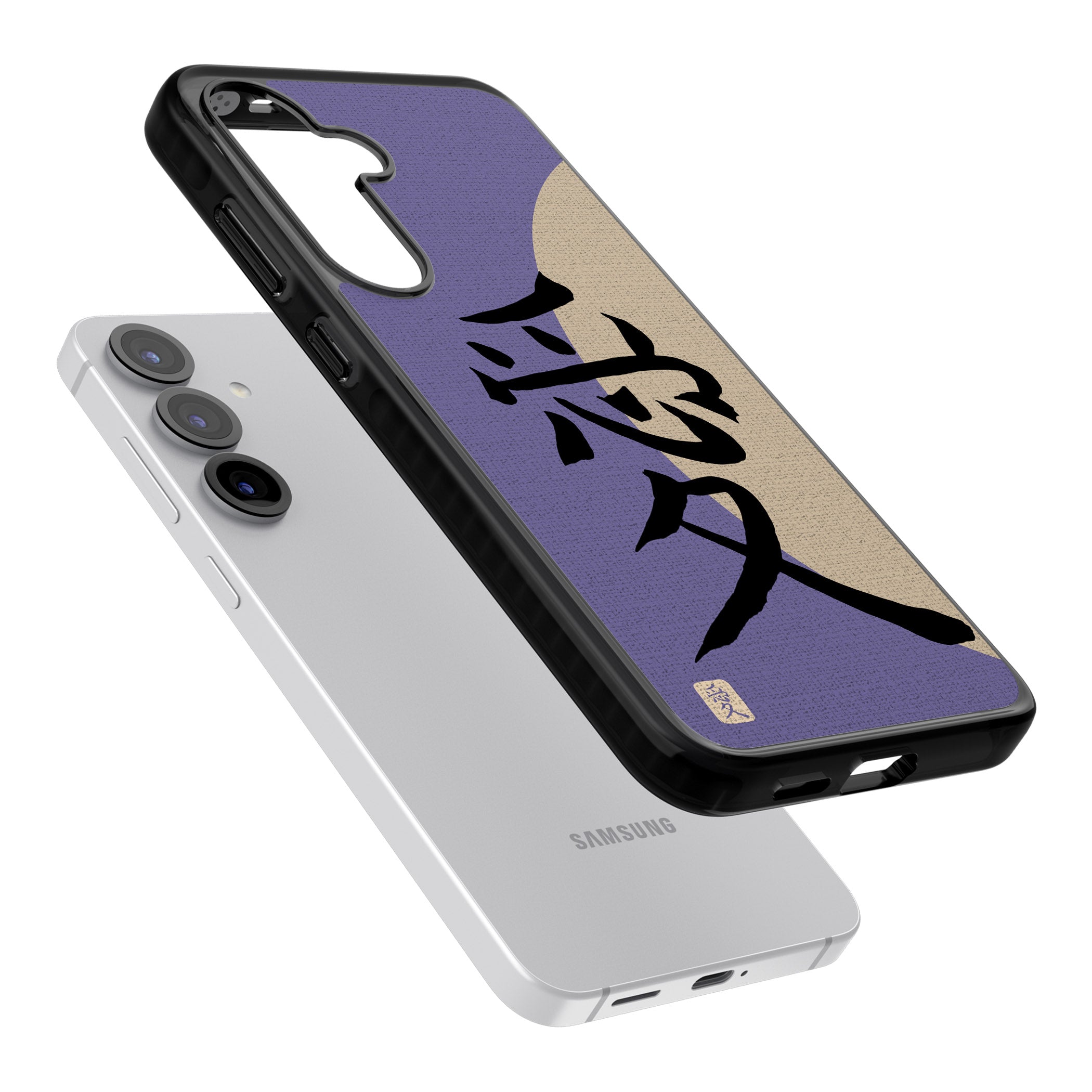 Express your love for Japanese art with this elegant case, where tradition meets modern protection. The kanji character for 'love' is beautifully rendered in a bold black against a textured purple and beige backdrop.