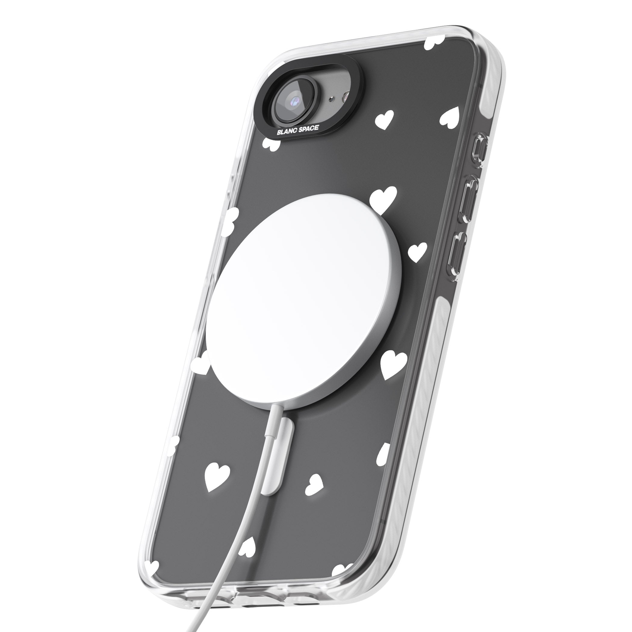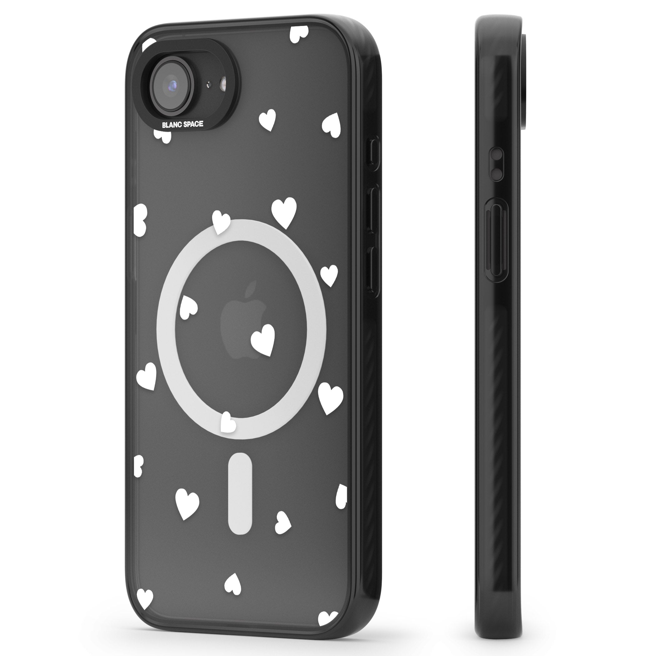 Give your phone a touch of love with our White Hearts Phone Case. This playful design features cute white hearts on a sleek black background, balancing love with a minimalist aesthetic.
