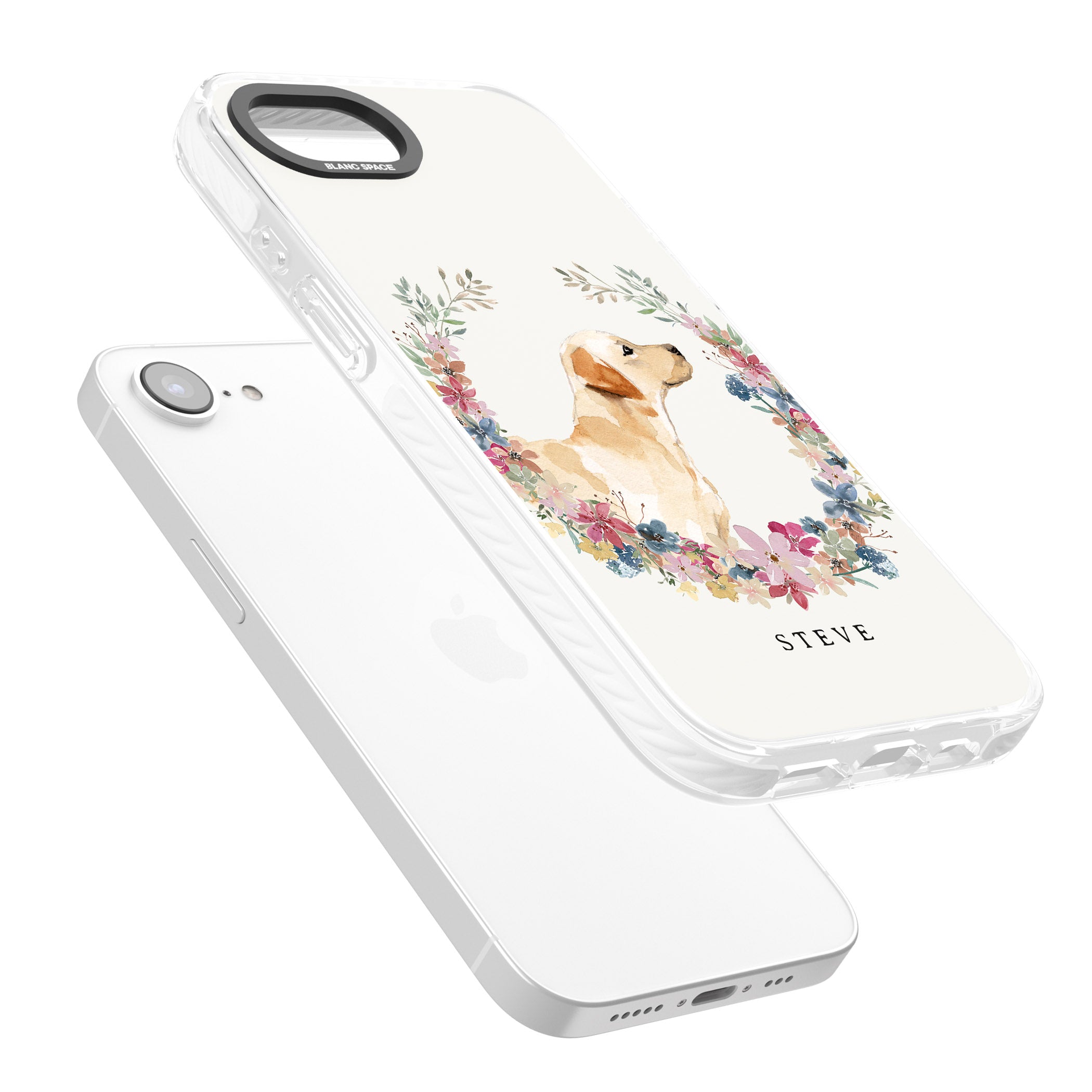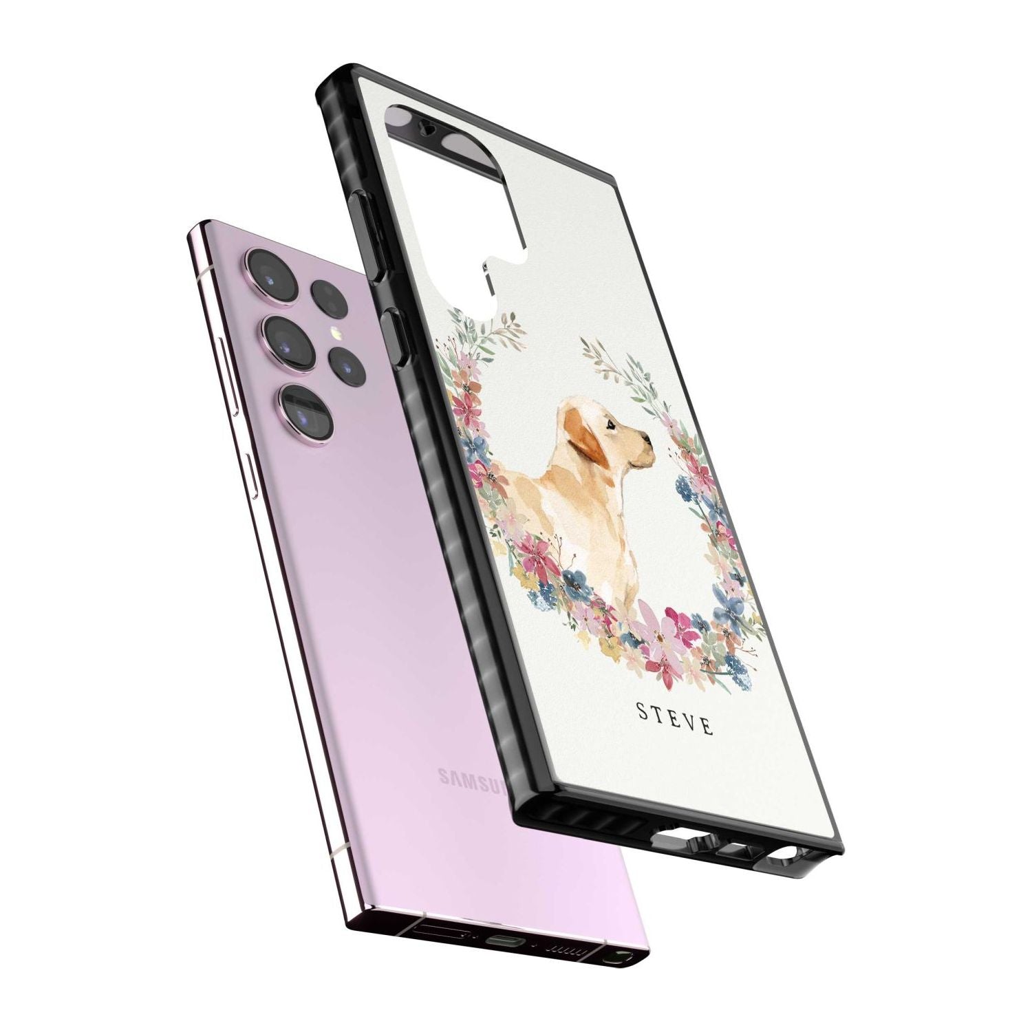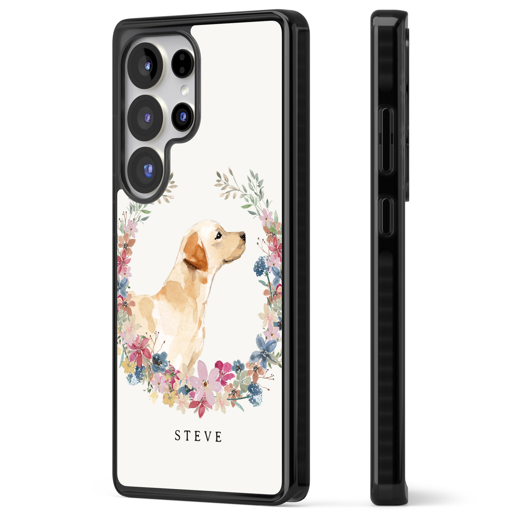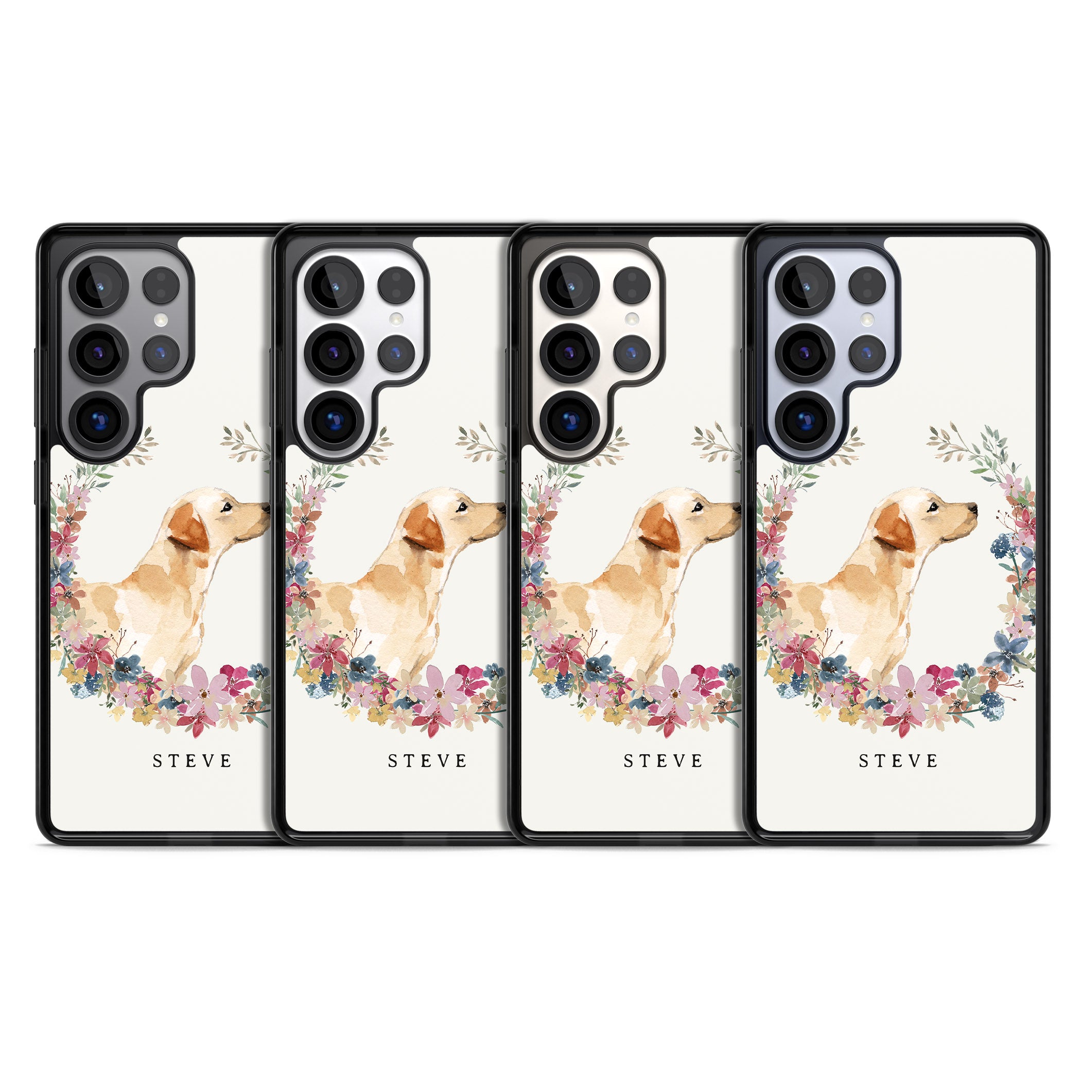 Wrap your phone in a charming watercolor scene where a loyal Labrador comes alive amid a floral wreath, adding a touch of nature-infused beauty to your everyday carry.